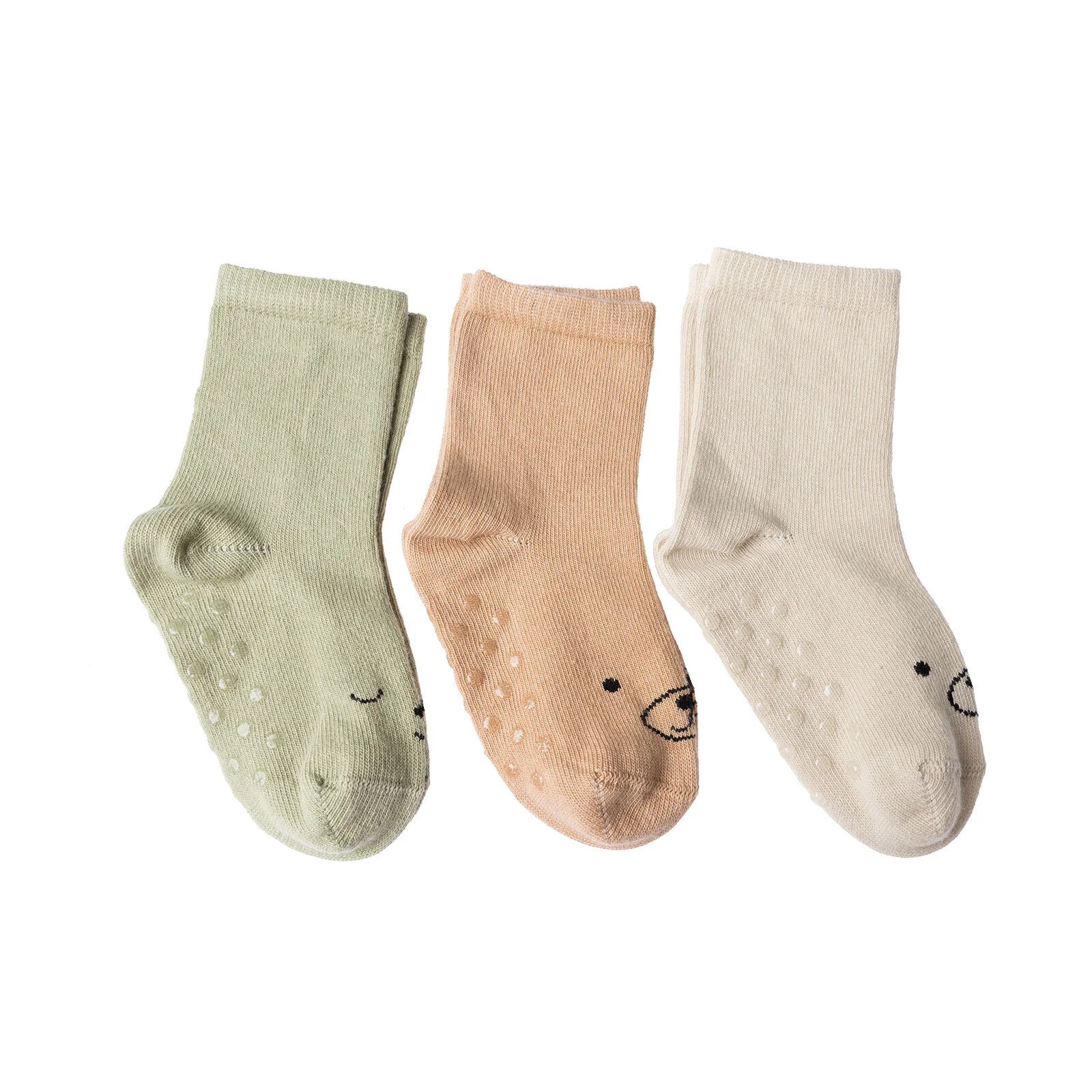 HelloBaby Boy Non-Slip Baby Socks 3 Pack - Beige