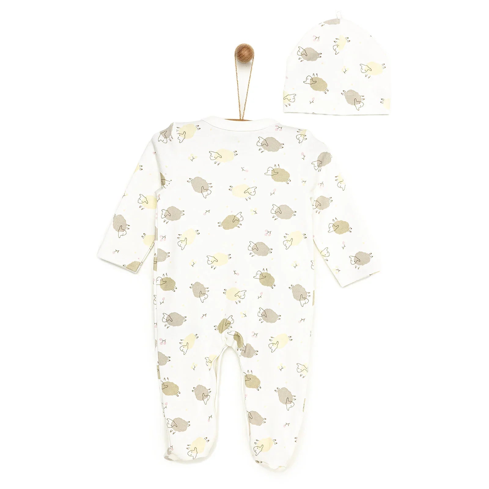 HelloBaby Footed Jumpsuit with Hat - Ecru