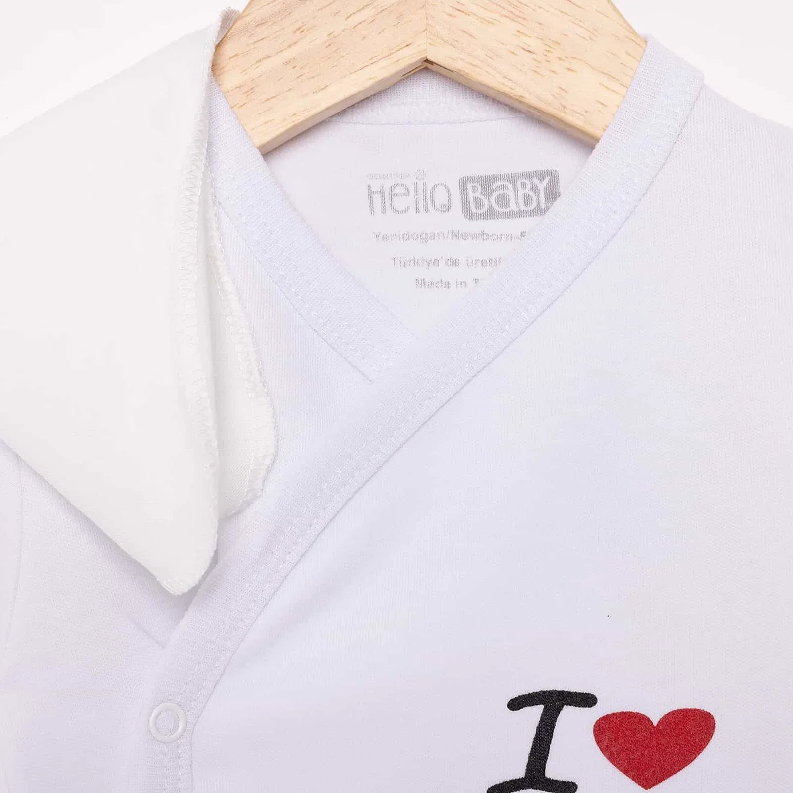 This sweet newborn set offers a soft touch to your baby’s delicate skin with its cotton fabric. Its breathable material and comfortable fit make it a practical yet stylish choice from the very first days.