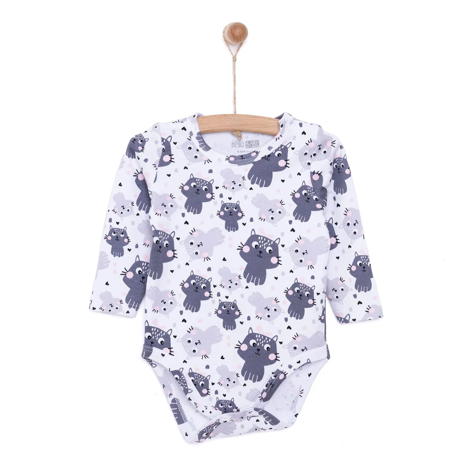 HelloBaby Girl Cat Printed Long Sleeve Bodysuit - White