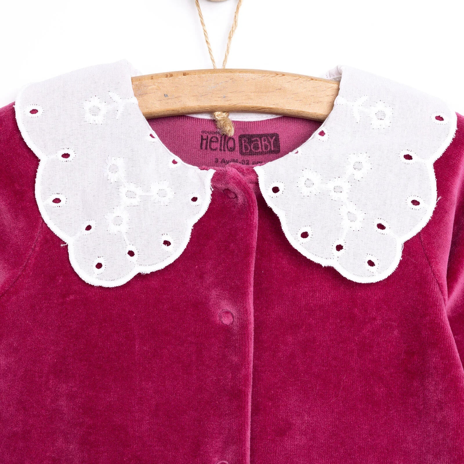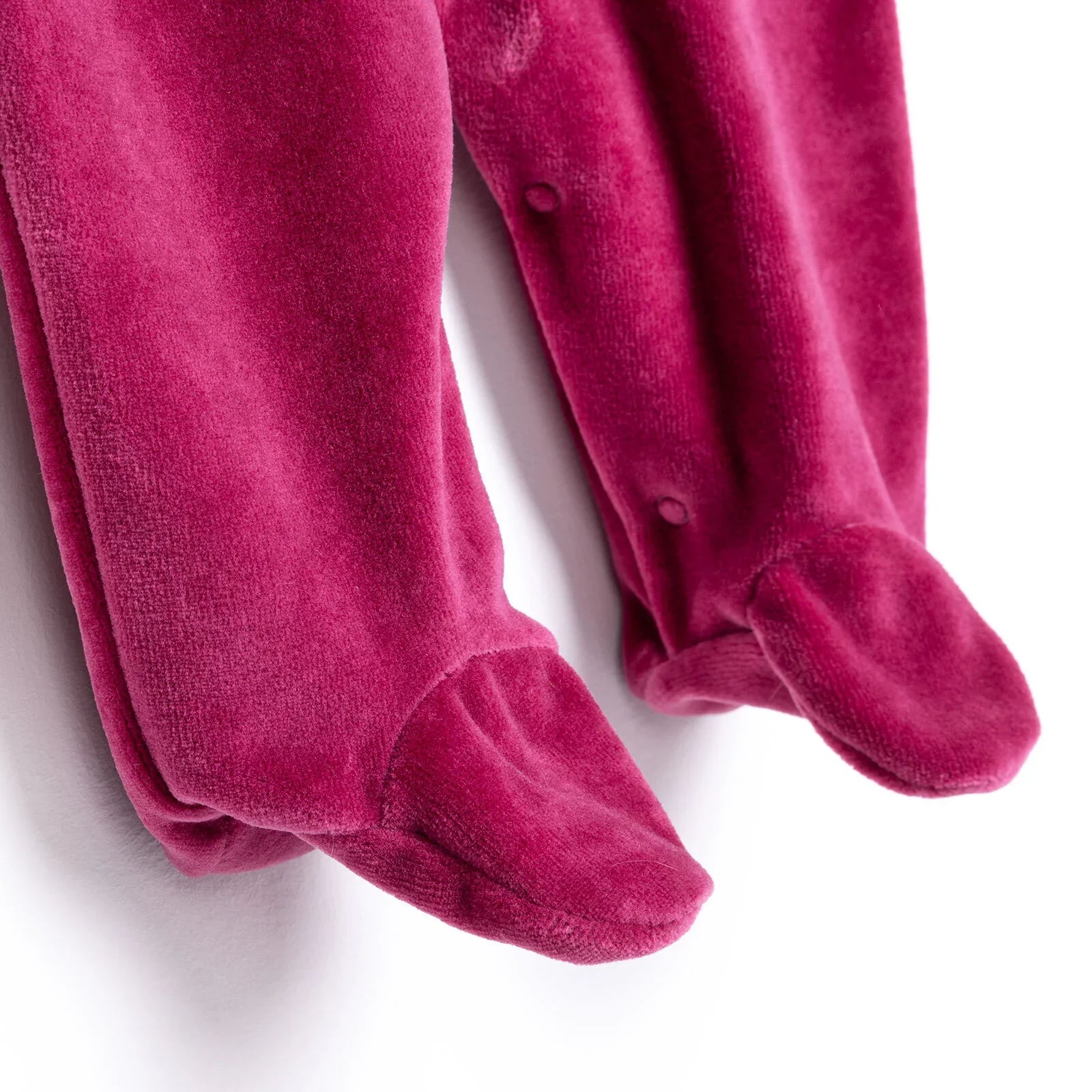 HelloBaby Newborn Unisex Embroidered Velvet Jumpsuit - Fuchsia
