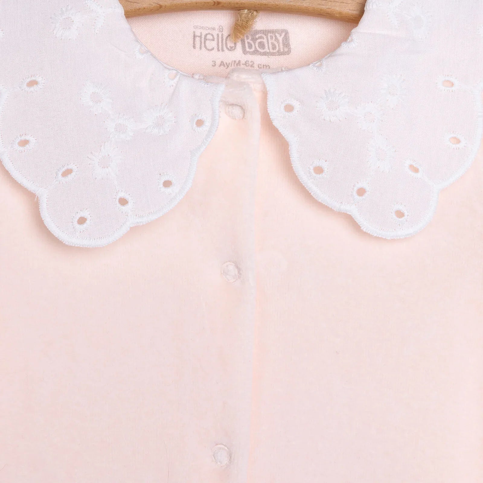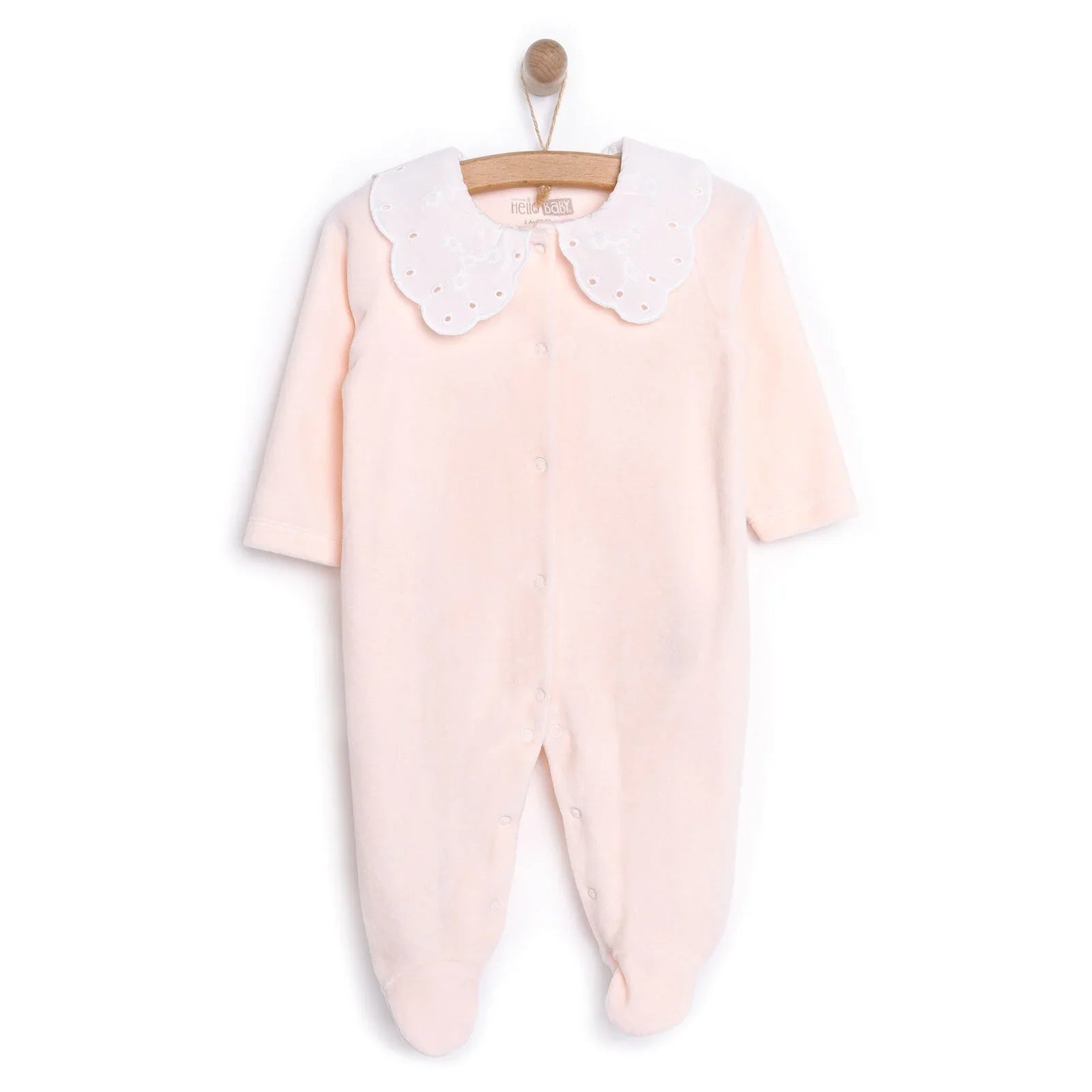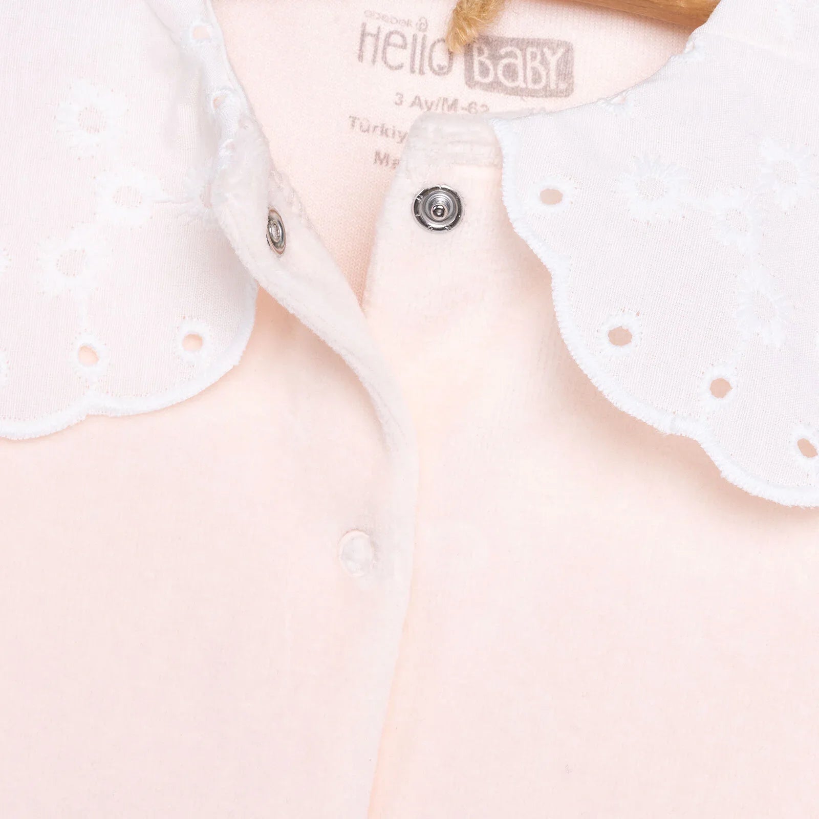 HelloBaby Newborn Unisex Embroidered Velvet Jumpsuit - Light Pink