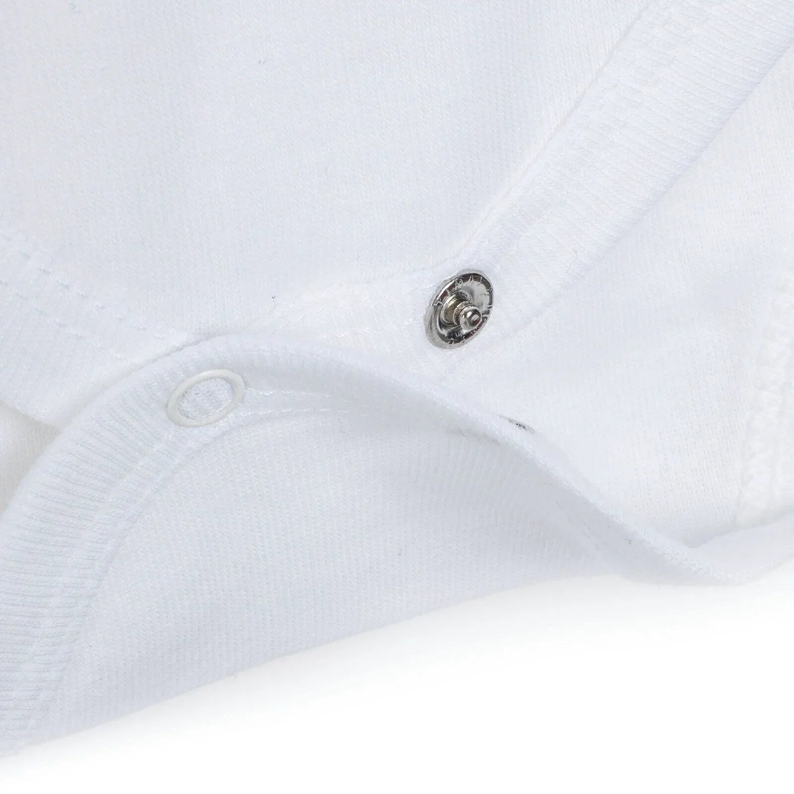 A lovely selection of white baby bodysuits that are both charming and useful. This lovely collection of 5 long sleeve bodysuits is the ideal addition to your child's wardrobe because it combines comfort and style in one adorable garment.
