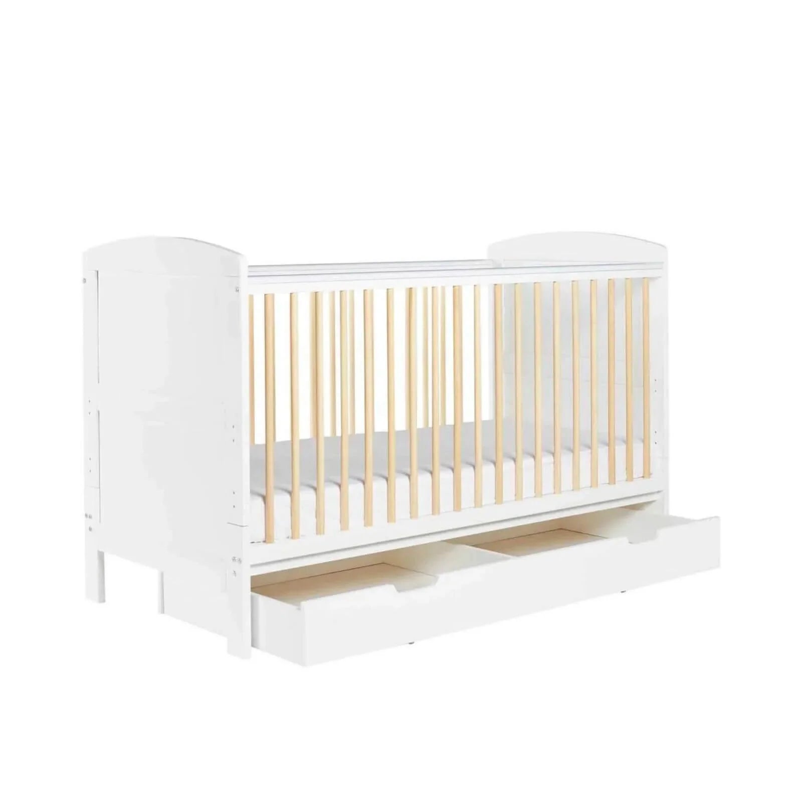 Ickle Bubba Coleby Scandi Cot Bed with Under Drawer Scandi White - Fibre Mattress