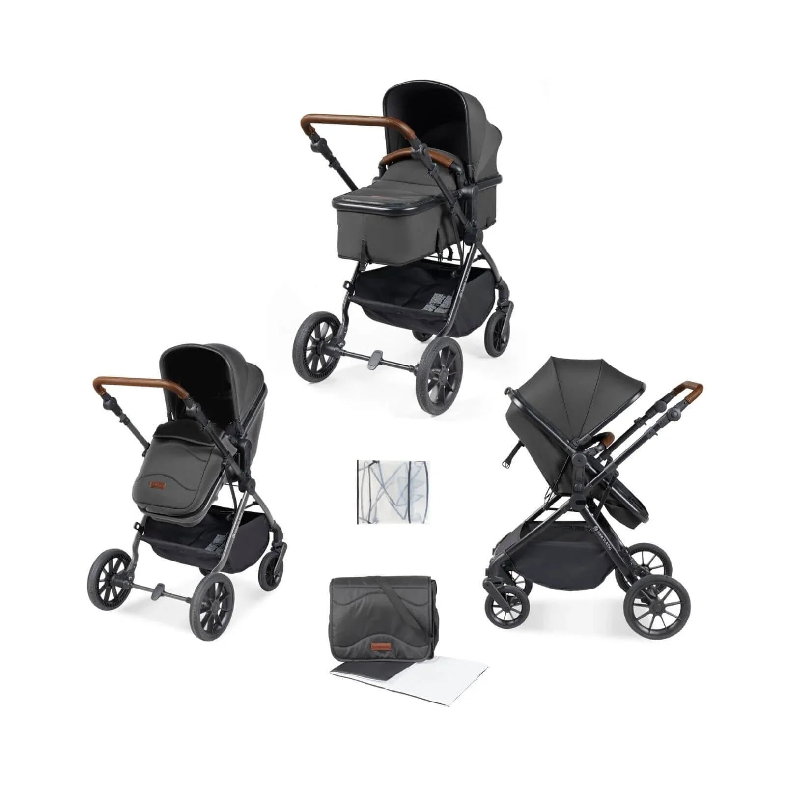 Ickle Bubba Cosmo 2-in-1 Pushchair & Carrycot - Black/Graphite Grey/Tan