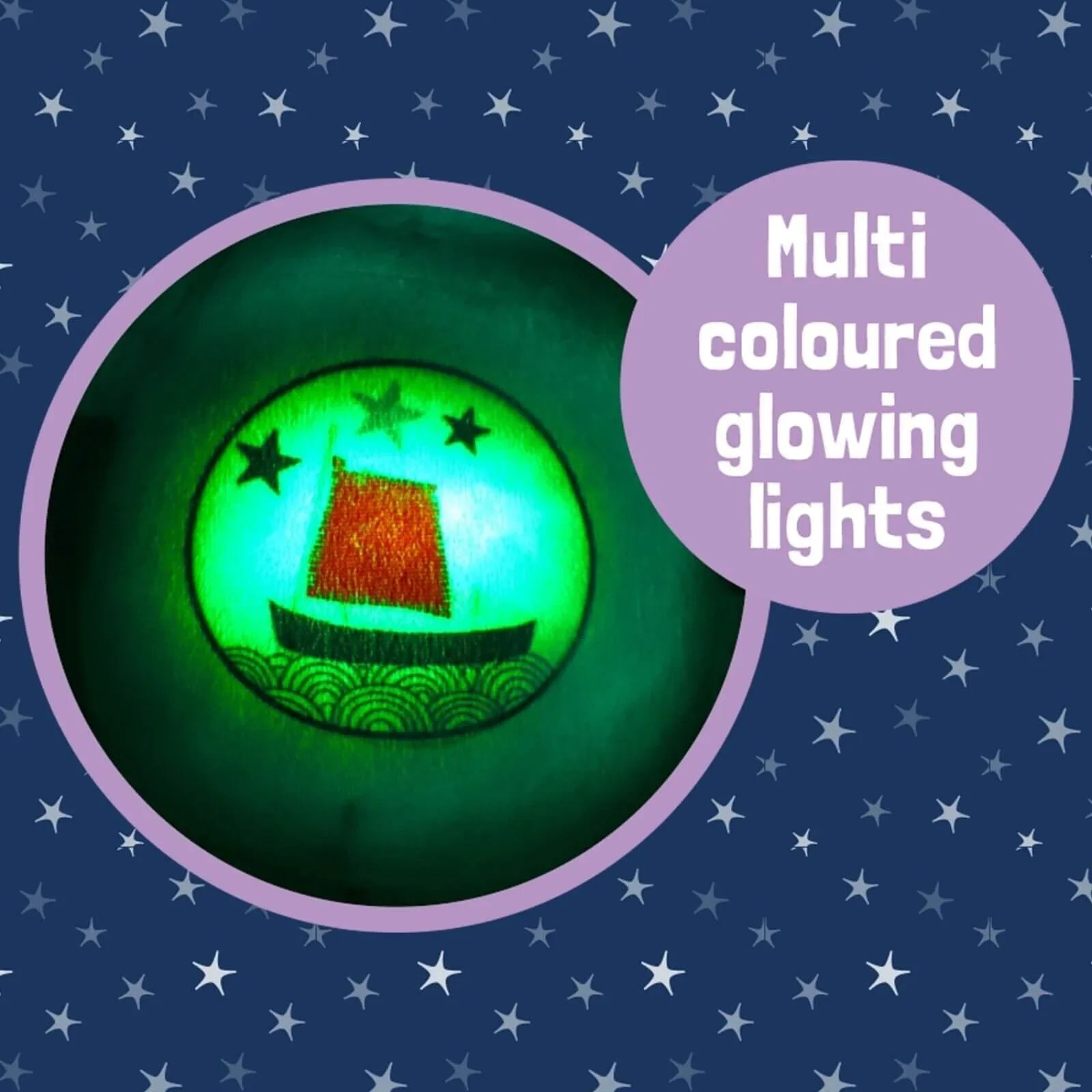 “Light the little light, this is the way to the garden in the night…” Goodnight Igglepiggle features beautiful printed details of his boat as it appears in the classic opening of the series. See the scene light up softly in multiple colours as your child drifts into a relaxing nap time.