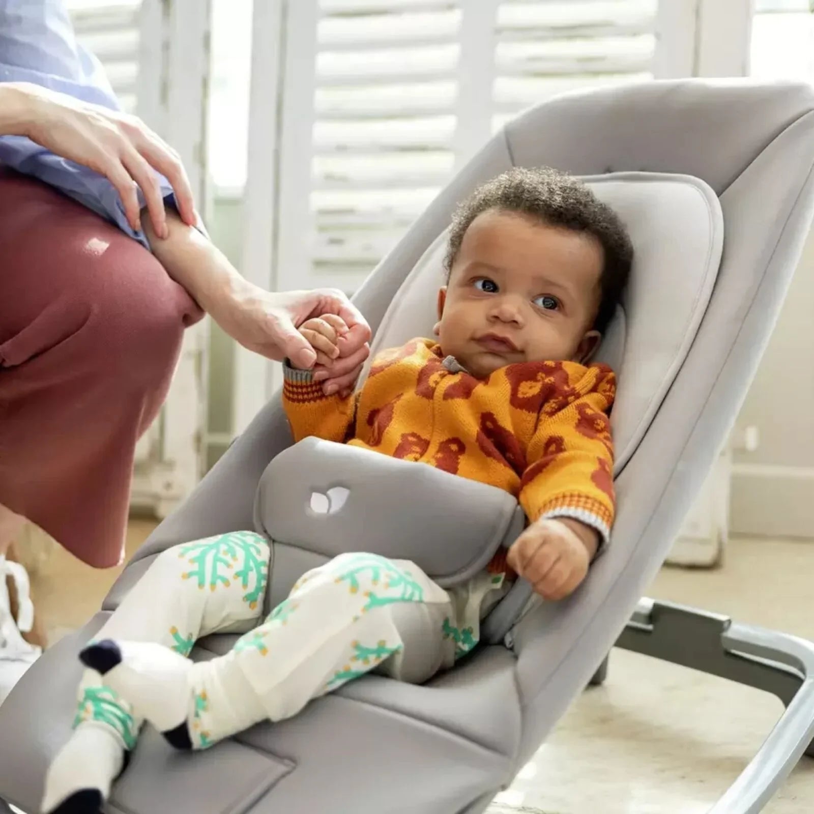 The Joie Dreamer Rocker is a versatile baby rocker designed to keep your little one both relaxed and entertained. Suitable from birth, it offers three reclining positions and a two-position adjustable leg rest to ensure maximum comfort. The gentle rocking and bouncing motion is activated either by your baby's natural movements or a gentle push. With five classic lullabies, five nature sounds, and two soothing vibration settings, it helps your baby drift off to sleep peacefully. Perfect for keeping your baby calm and cosy, wherever you are.