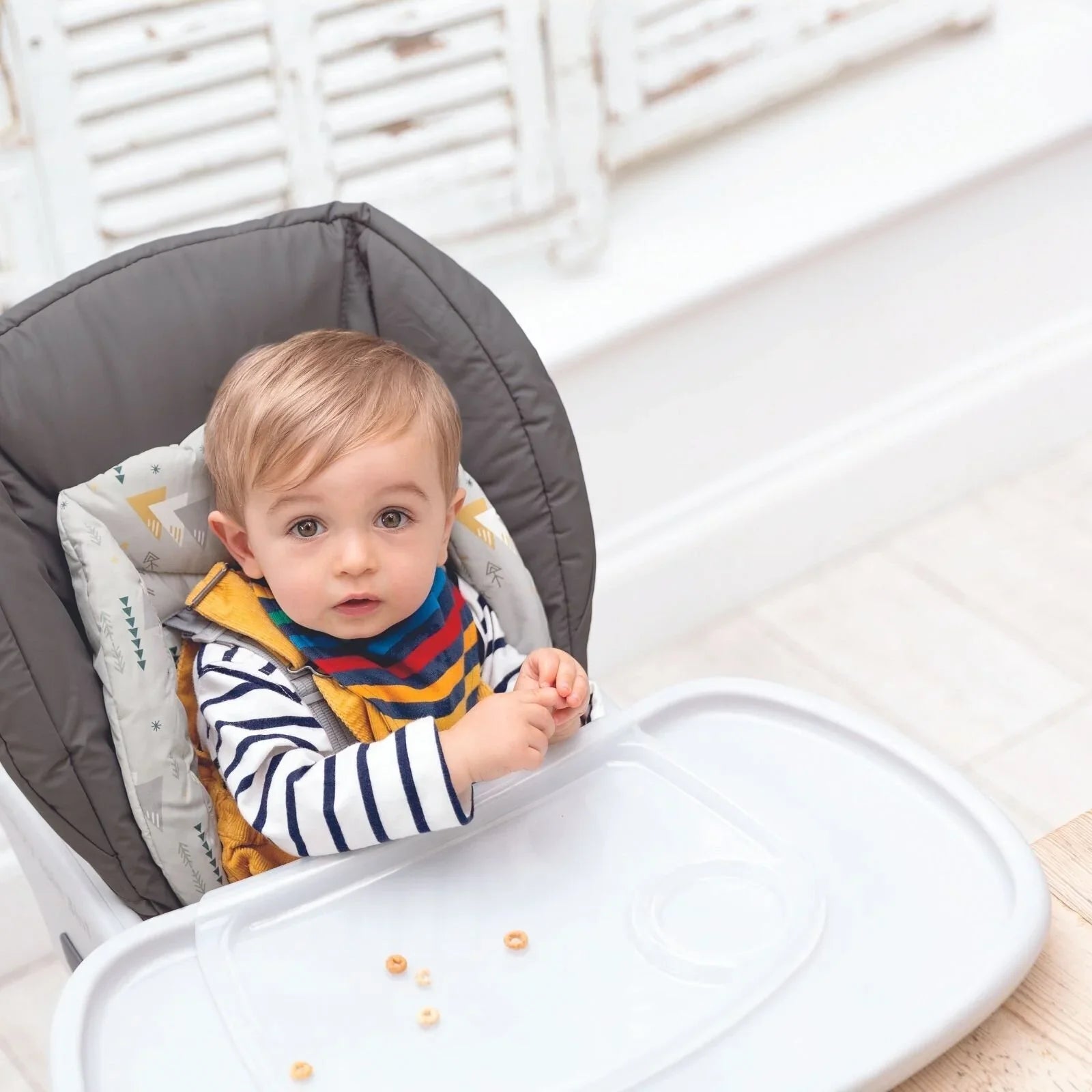 The Joie Mimzy Spin 3 In 1 Highchair - Geometric Mountains is a versatile and convenient highchair option. Here are the key features and specifications of the highchair: