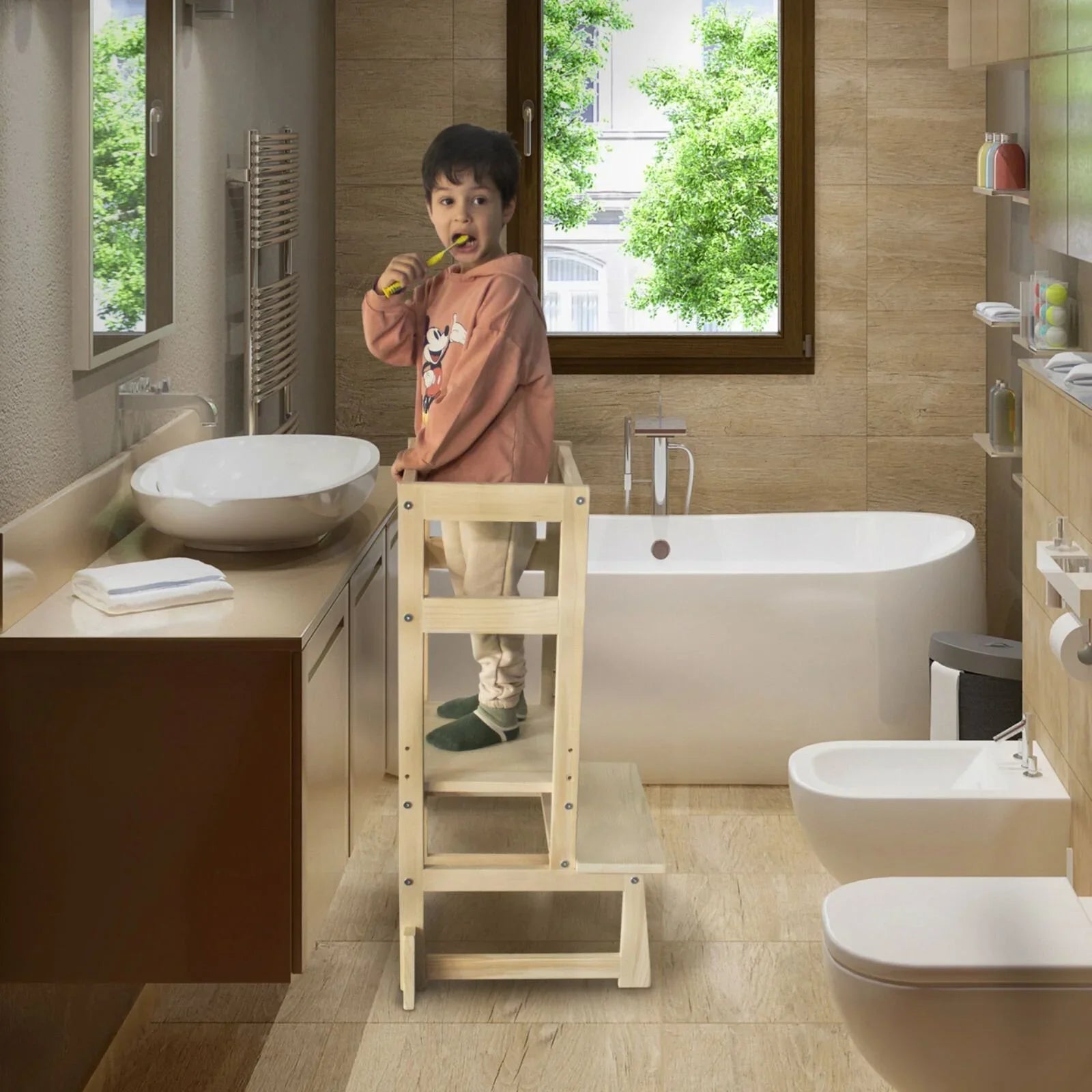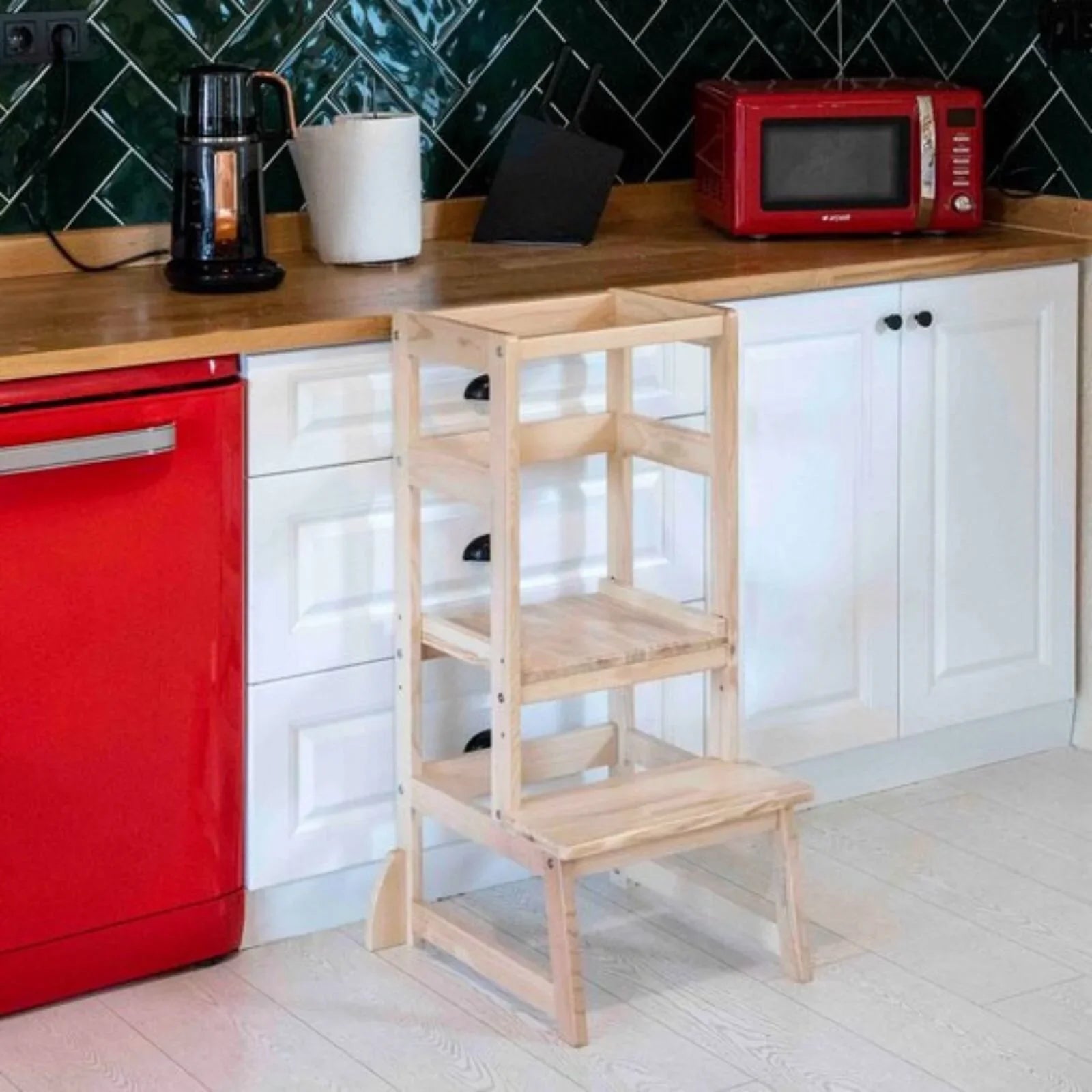 The Kukka Wooden Learning Tower is the perfect helper to encourage children to take part in daily life and develop independent skills. Its sturdy wooden structure and four-sided safety rails create a secure space for little ones. Whether used in the kitchen, bathroom, or other areas of the home, it allows your child to join you in activities like washing hands or fruits and vegetables. With three adjustable height levels, it grows with your child and can be used for years. Made from natural, non-toxic wood, its stylish design makes it an essential and trusted part of family life. With Kukka, you’ll create a safe space for your little one while helping them build confidence and independence!