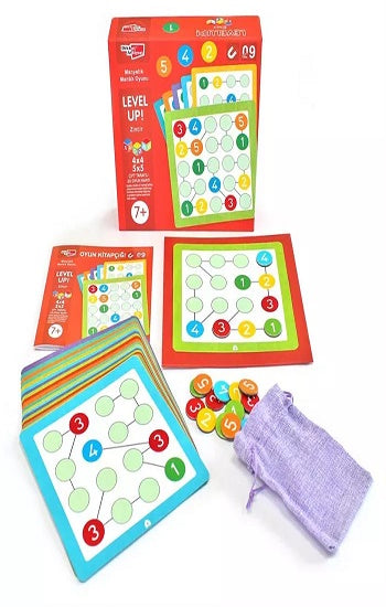 Dikkat Atölyesi Yayınları Seviye Atla! 9 - Zincir Sudoku Zincir sudoku, her gün oynayabileceğimiz popüler bellek ve mantık oyunlarından biridir. Çocuklarda ve yetişkinlerde fiziksel egzersiz gibi beyin egzersizi sağlar. Zincir sudoku, bulmaca çözme süreci boyunca beyni harekete geçiren bir oyununuzun beyne daha hızlı düşünmeyi öğretmeye yardımcı olur. Ne kadar çok oynarsanız düşünün ve problem çözme becerileriz o kadar hızlı olur. Oyunda kartlardaki seviyeye göre çizgilerle birbirine bağlanma şeklinde her dört gruplu 1'den 4'e kadar, her beşli grup 1'den 5'e kadar her rakam sadece bir kez kullanılır. 4x4 - 5x5 manyetik zincir sudoku oyunu kolay, orta ve zor hesaplamalardan oluşur. Kutu İçeriği: 1 adet manyetik oyun tablası, toplam 20 adet çift taraflı 4x4 - 5x5 oyun kartı, 25 adet manyetik oyun pulu, 1 adet oyun kitapçığı. Yaş Grubu:7+ YaşTanıtım Metni