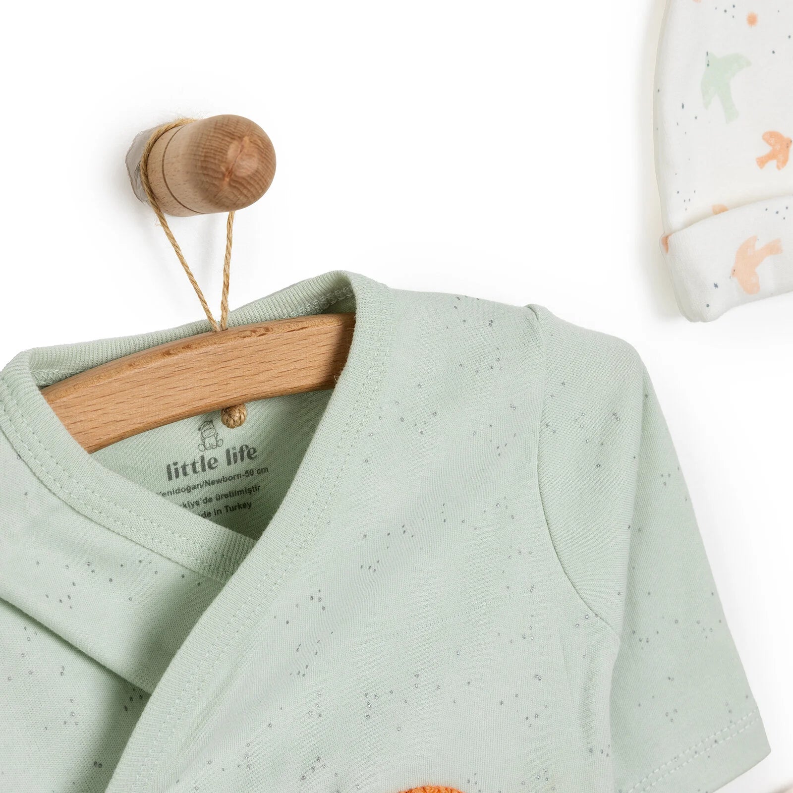 This 5-piece newborn hospital outfit is an ideal choice to ensure your baby's comfort and safety. With its cotton fabric, it provides comfort while keeping them warm with its long sleeves and booties style.