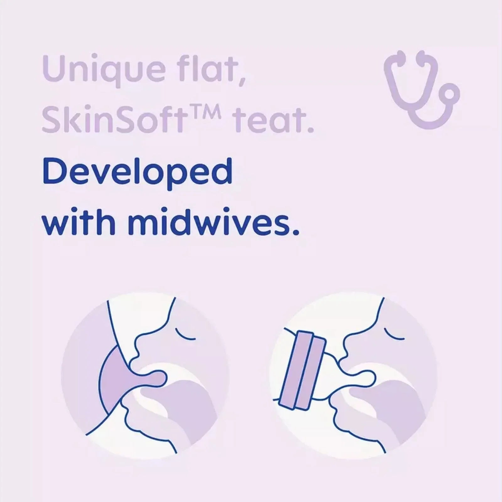 Pour the measured breast milk or formula into the bottle through the wide opening. Avoid overfilling, leaving some space at the top to prevent spills or leakage. Before feeding your baby, test the temperature of the milk or formula by placing a few drops on your wrist to make sure it is comfortably warm, not too hot.