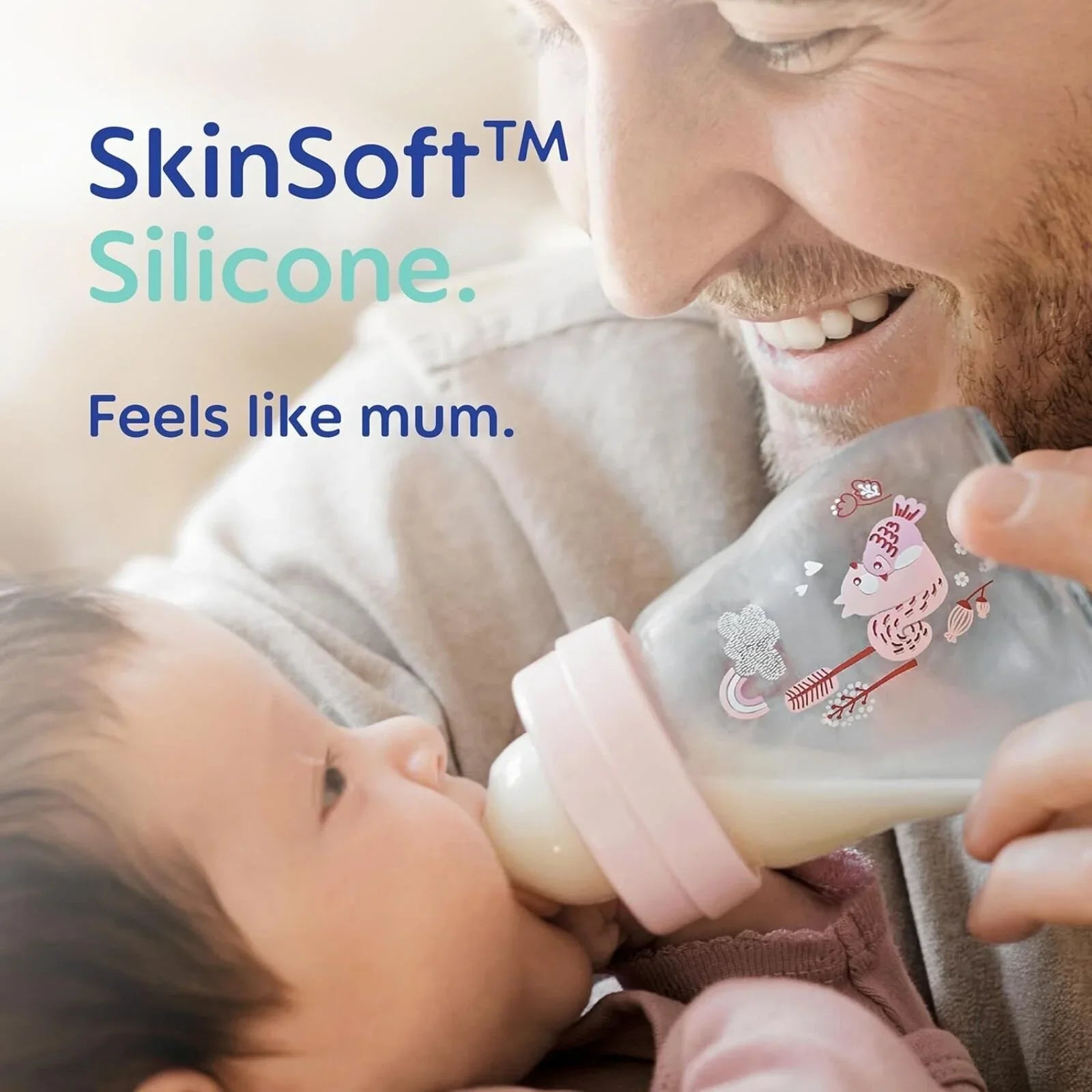 Meet the newest and smallest member of the MAM Glass Bottle Range. The 90ml Glass Bottle was created with newborns in mind, to offer a safe and friendly starting point for Glass Bottle use. The MAM Glass Bottle Range offers parents a natural progression as baby grows and moves onto larger bottles. Developed and rigorously tested by MAM’s team of medical and safety experts, designers and engineers, MAM Feel Good Glass Bottles are strong, durable and naturally BPA-free. The MAM Feel Good Bottles are made of temperature resistant glass. As a result, the bottle can be heated in the microwave or bottle warmer, cooled down quickly, cleaned in the dishwasher, and sterilised at high temperatures. The bottles also offer a greener, more environmental choice for parents, and their ergonomic round shape means baby's can easily hold them. Simple and safe to use to make everyday baby life easier. Like all MAM bottles they include the SkinSoftTM teat which is silky soft and provides a familiar feel for babies. Market research confirms that 94%* of babies accept the teat making it perfect for when mum wants to be a bit more flexible.(*Market research 2009-2017, tested with 1,508 babies.)