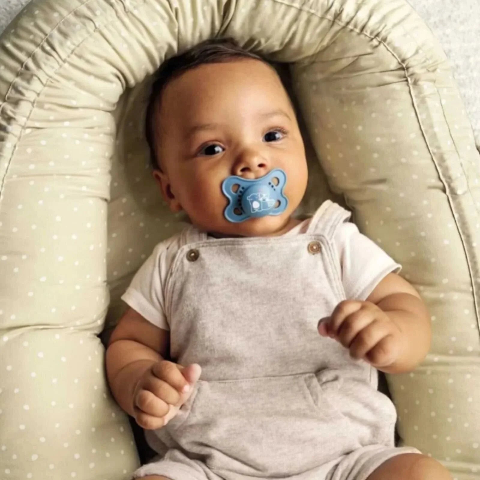 The MAM Original Soother is designed in collaboration with dentists to suit babies’ delicate oral development. Its curved butterfly shape and large air holes provide skin-friendly comfort, while the SkinSoft™ silicone teat – accepted by 94% of babies – offers a natural, soothing feel. With a symmetrical, orthodontic shape, it supports healthy jaw development. Supplied in a self-sterilising travel box, it can be hygienically sterilised in the microwave in just 3 minutes – perfect for use anytime, anywhere.