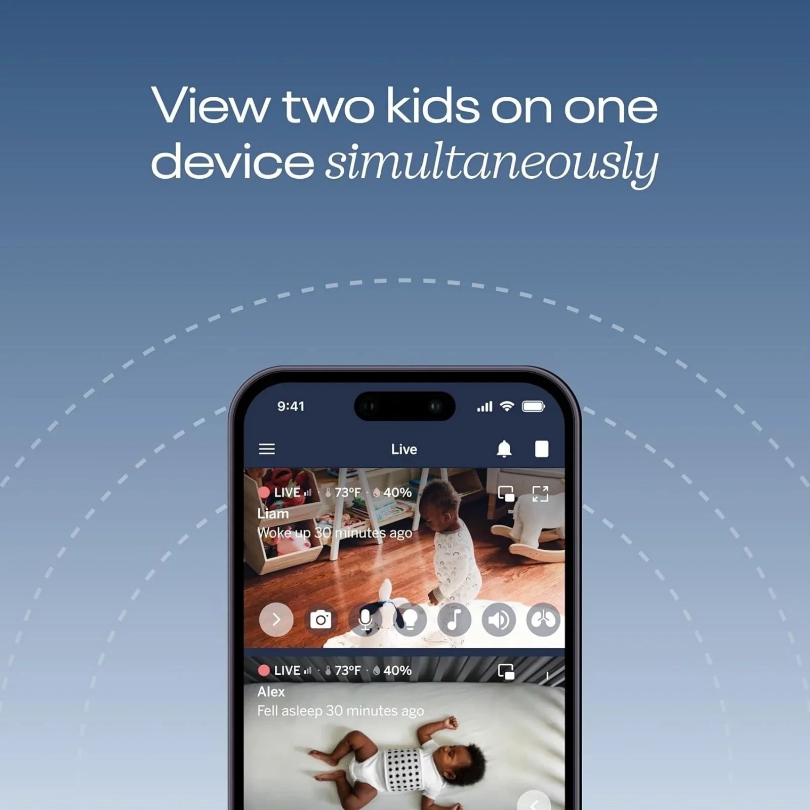 • Two-way audio allows you to communicate with and soothe your baby remotely.