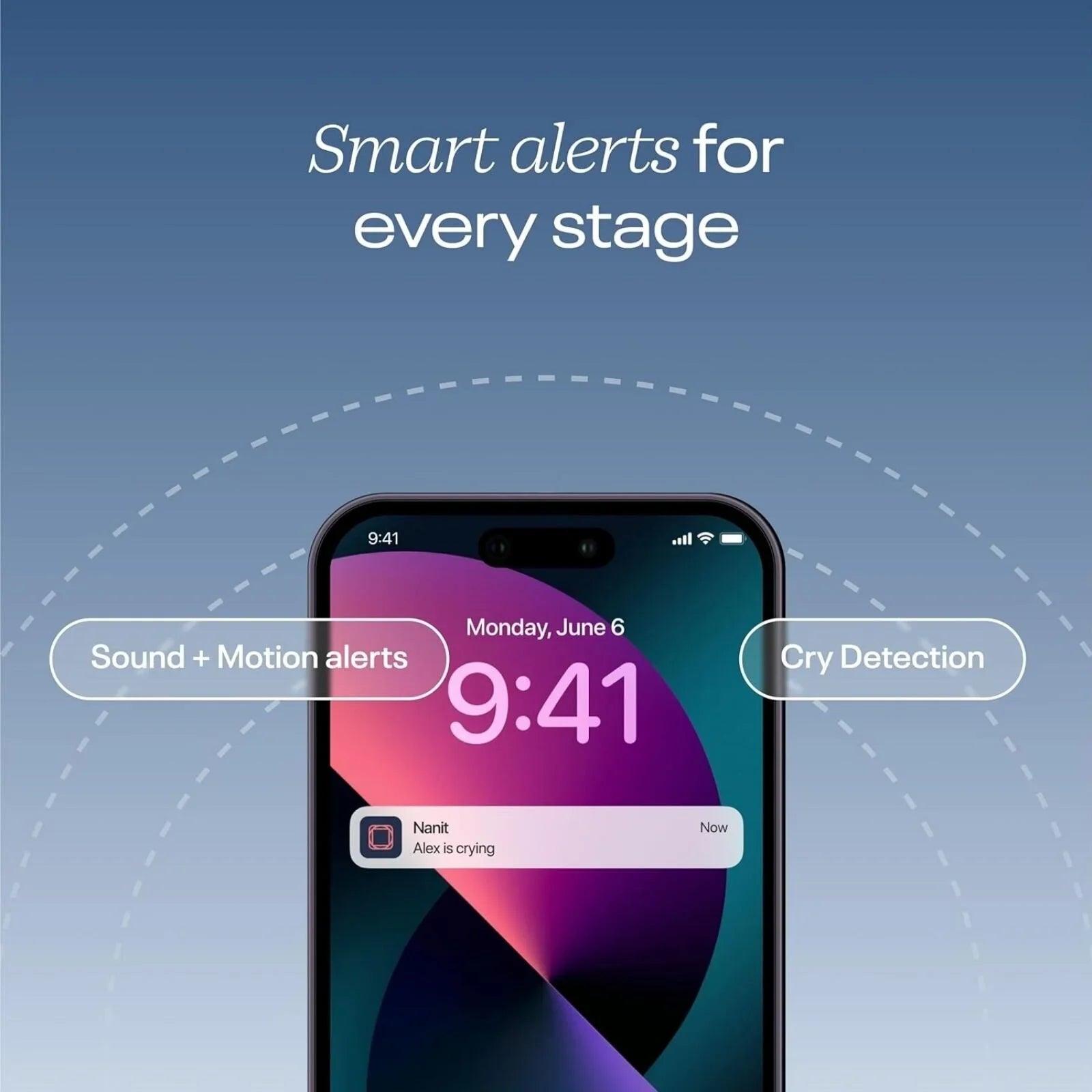 • Motion, sound, and cry detection alert you when your baby needs attention.