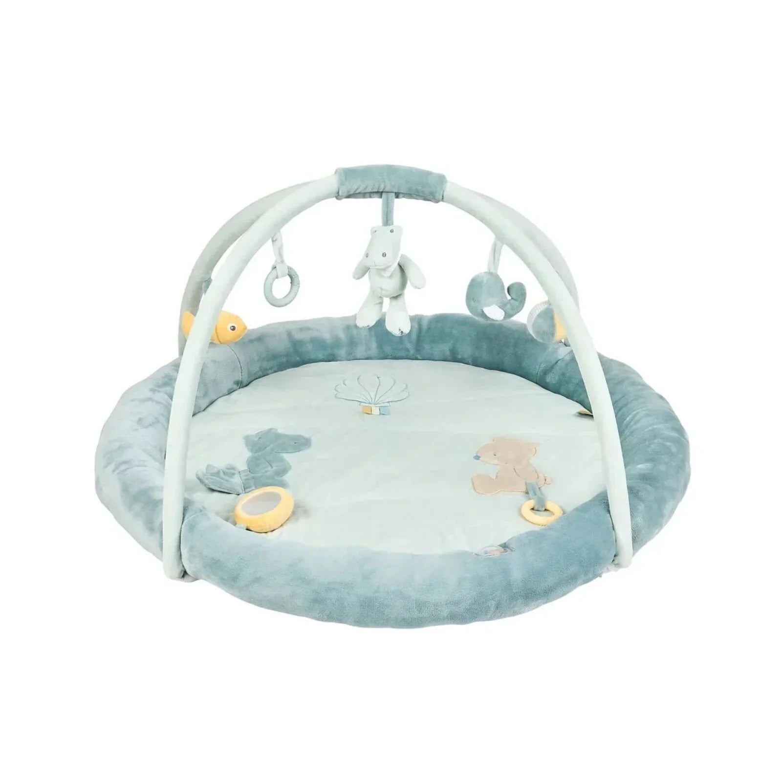 Nattou Stuffed Playmat provides a stimulating, fun, and comfortable play space for your baby. With plush padded edges and an ultra-soft surface, it keeps your little one safe and cosy while encouraging them to explore textures, sounds, and movement.
