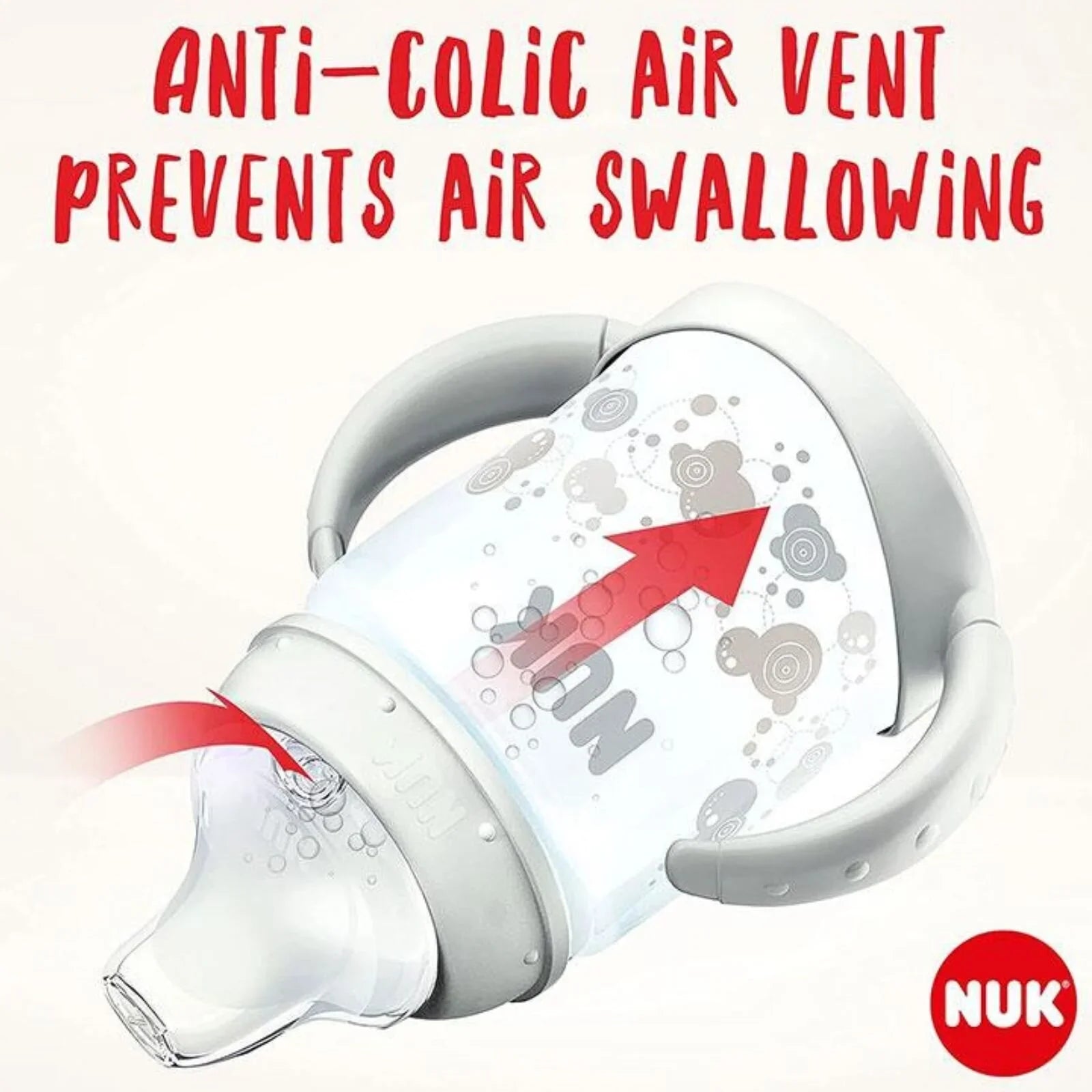 Interchangeable with all NUK First Choice+ bottles and teats. Easy to grip: soft ergonomic handles allow babies to hold the sippy cups themselves.