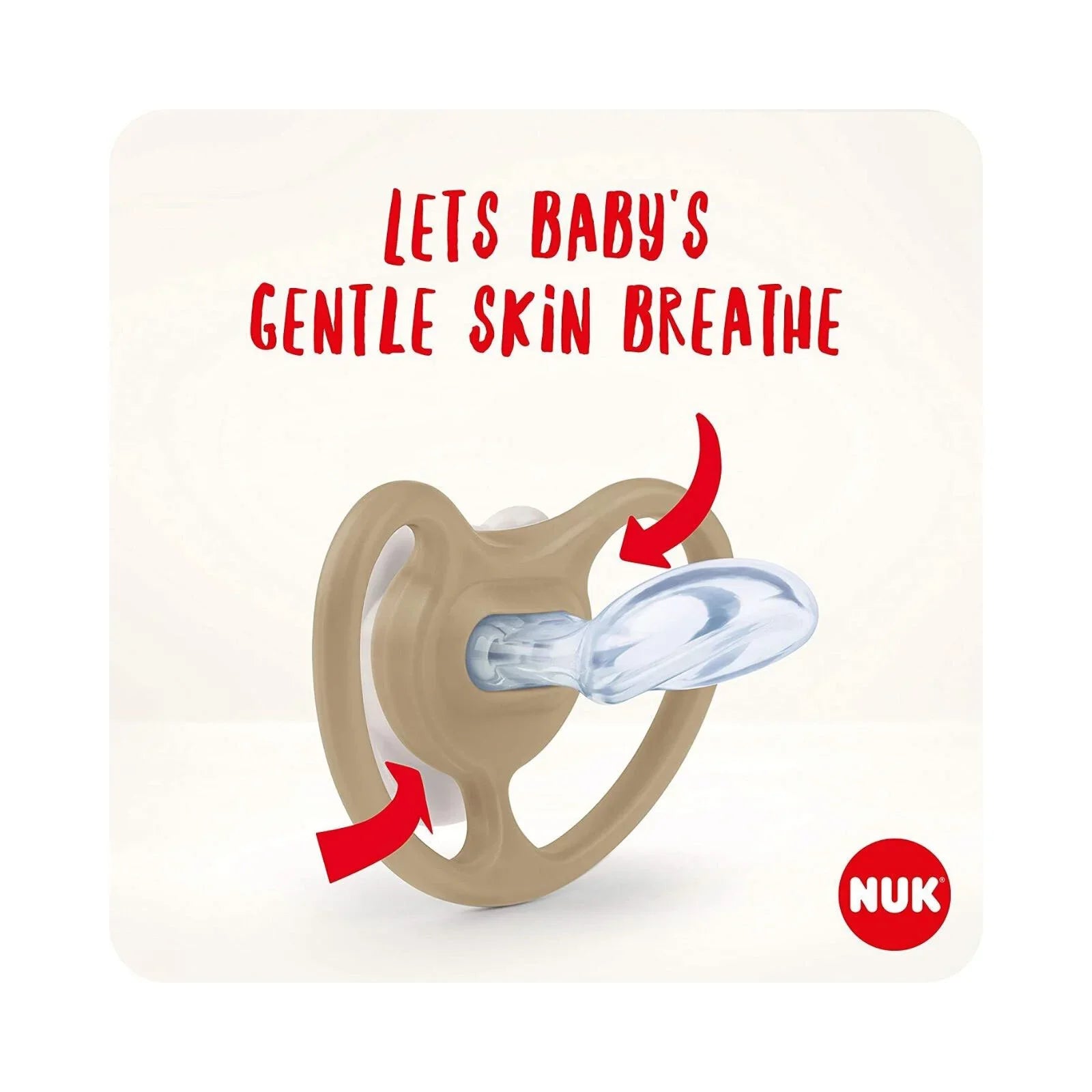 Elevate your baby's comfort with NUK Signature Soother Pink natural, jaw-shaped, and adorned with modern designs. Developed for healthy overall development, these soothers, backed by positive test results, offer a familiar shape for breastfed babies without affecting breastfeeding. The narrow, flat, and thin baglet ensures minimal pressure on little teeth and jaws, endorsed by midwives, paediatricians, and orthodontists. Choose NUK for a trusted, recommended, and comfortable choice for your little one.