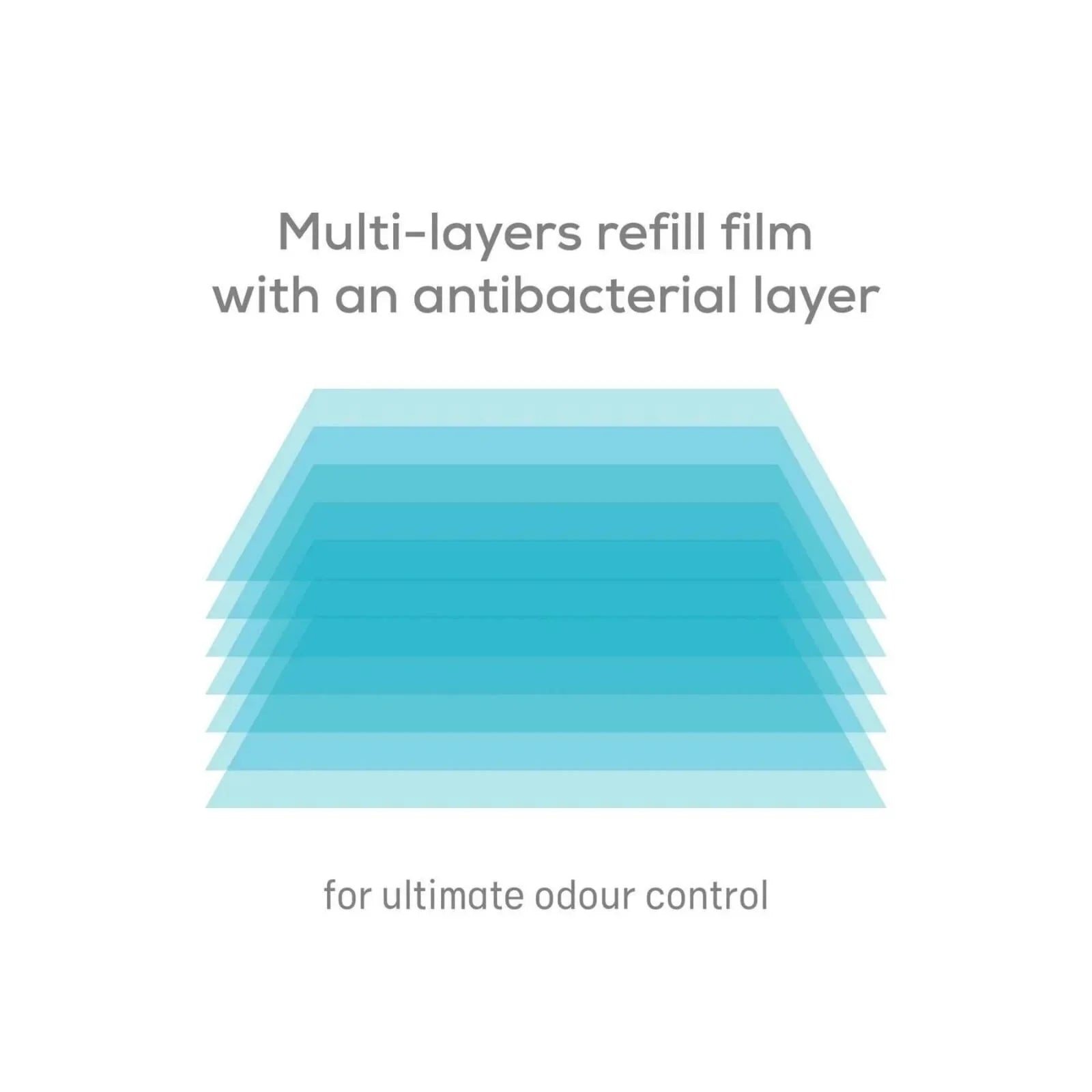 The Angelcare Refills are designed to work with our award-winning Nappy Disposal Systems. Our germ-fighting film wages war on even the strongest odours, helping keep stinky smells at bay and nurseries smelling fresh and clean. The multi-layer film provides an effective odour barrier with antibacterial technology, keeping bad smells and germs contained.