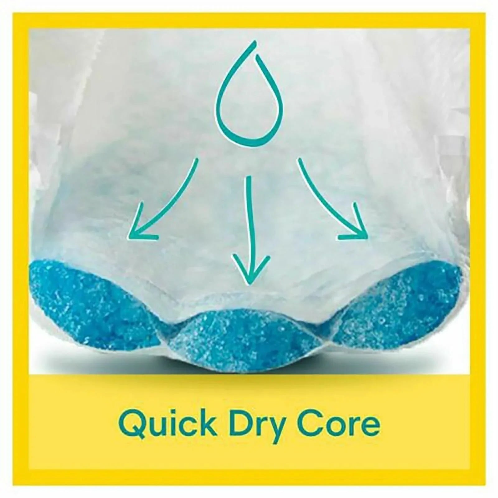 Pampers New Baby Size 3 presents an innovative nappy design with 3 Absorbing Channels and Micro Pearls, capable of absorbing up to 30 times their weight. This groundbreaking technology effectively contains wetness, ensuring up to 12 hours of uninterrupted Golden Sleep and a more comfortable morning.