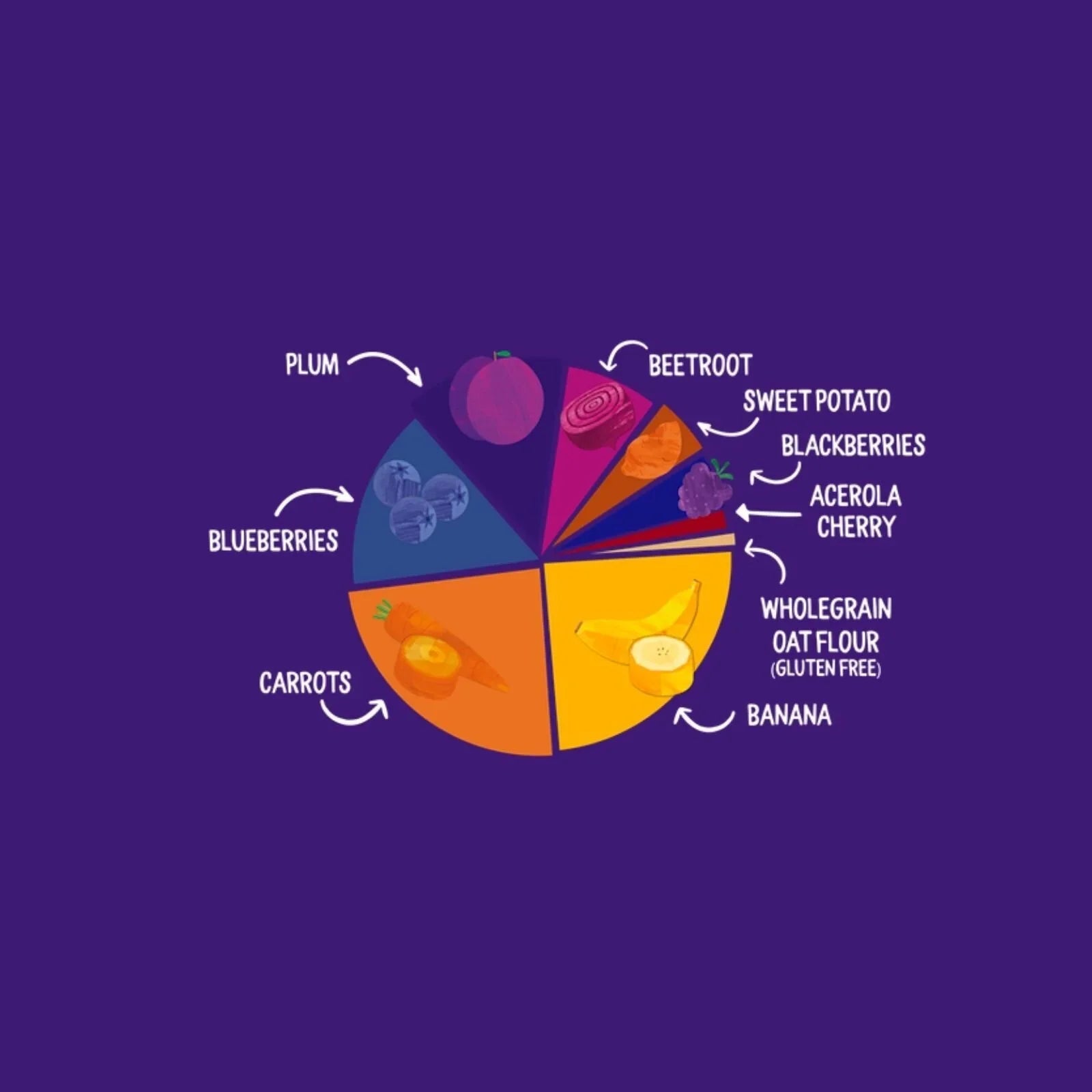 Piccolo Organic Mighty Purple Smoothies is a delicious puree made from a blend of strawberries, blueberries, carrots, bananas, beetroot, and blackberries. Enriched with both fruits and vegetables, this smoothie also contains acerola cherry, a natural source of Vitamin C, which supports the immune system. Suitable for babies aged 4 months and above, this gluten-free smoothie contains no added sugars. All ingredients are completely organic, making it a healthy and tasty snack for your little ones.