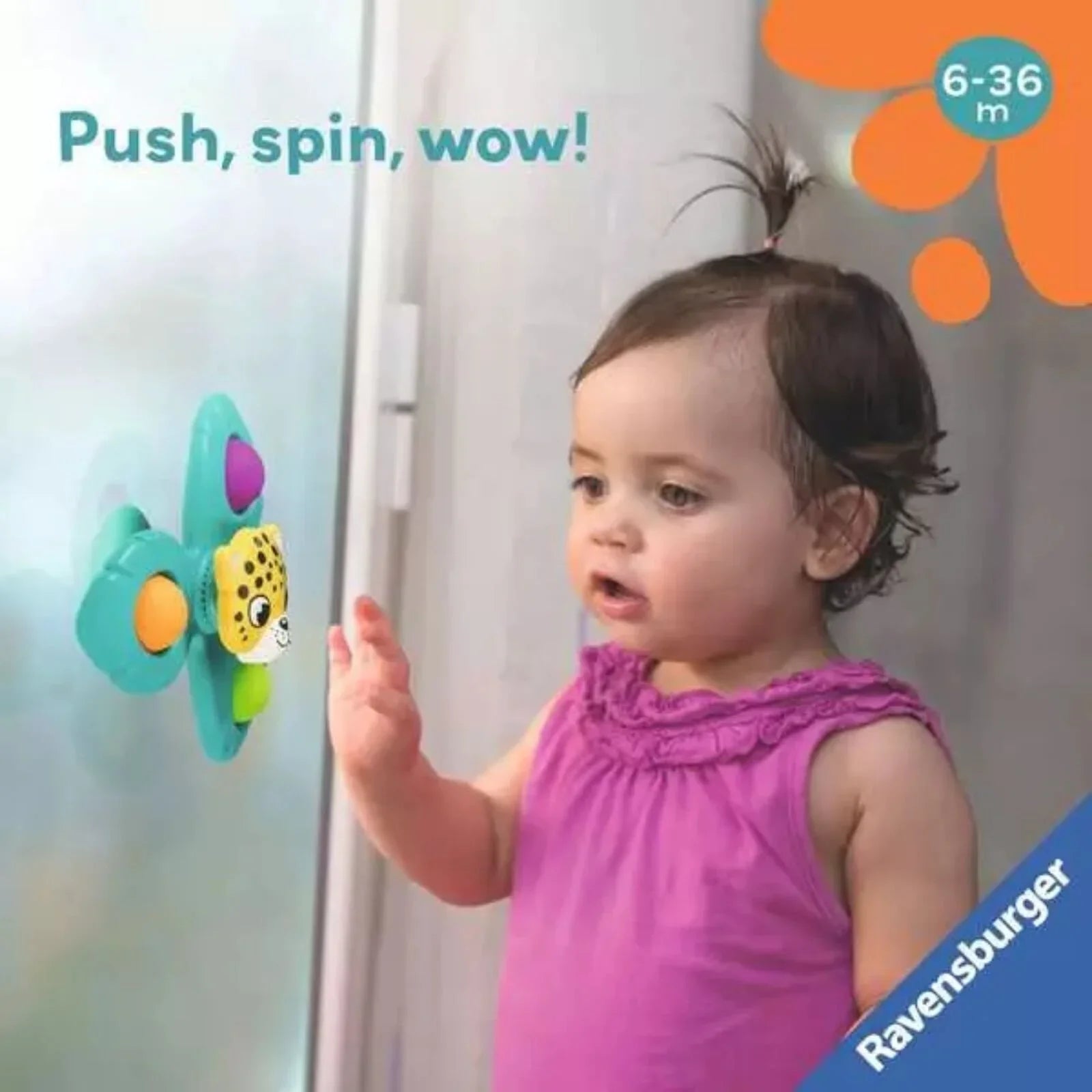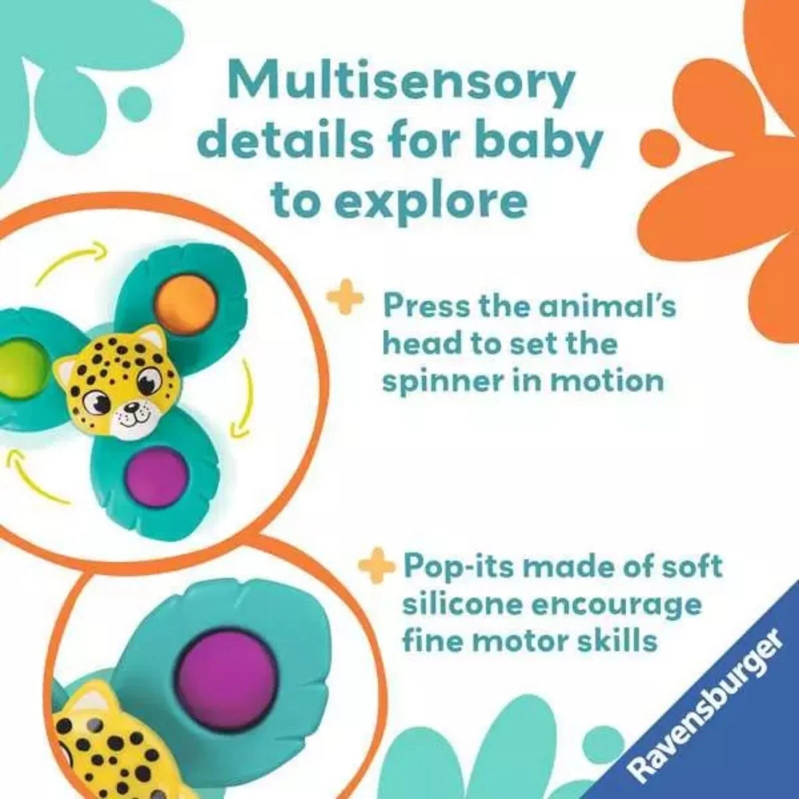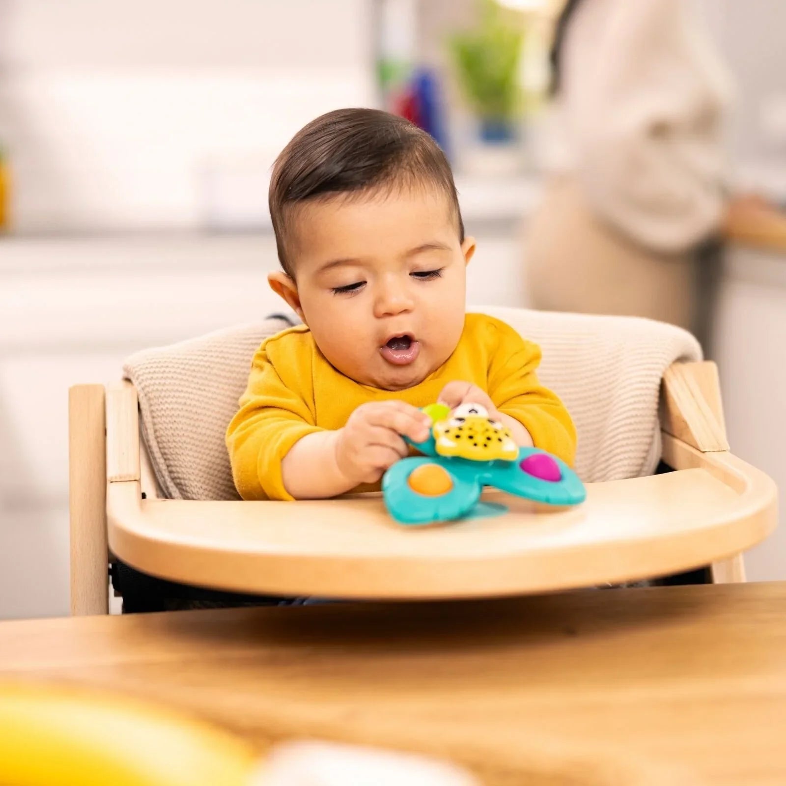 Play+ Spin & Pop Leopard features colourful silicone pop-its and spinning leaves that are activated by simply pressing the cute leopard’s head – a fun way to engage your baby’s visual and tactile senses. Perfect for playtime, mealtime, or nappy changes, it helps keep little ones happily distracted. The 100% silicone pop-its are safe to push and pop, while the suction cup base sticks securely to any smooth surface, allowing for stable and fuss-free play.