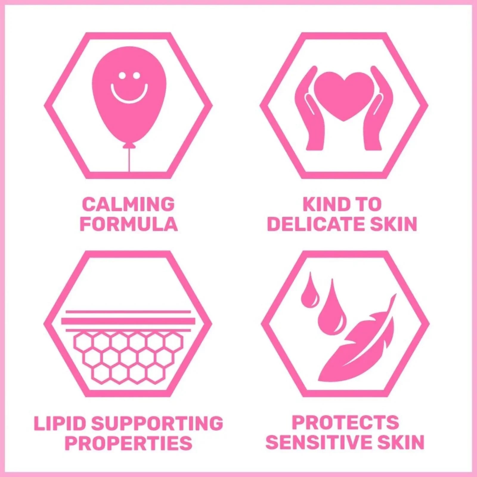 • Calming formula with Camomile soothes sensitive skin.