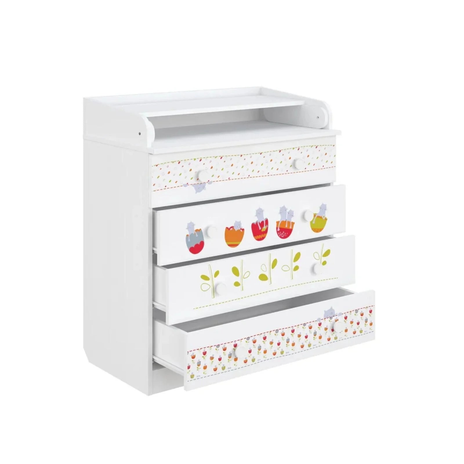 • Four spacious drawers allow you to neatly store nappies, clothing and all essential care items.