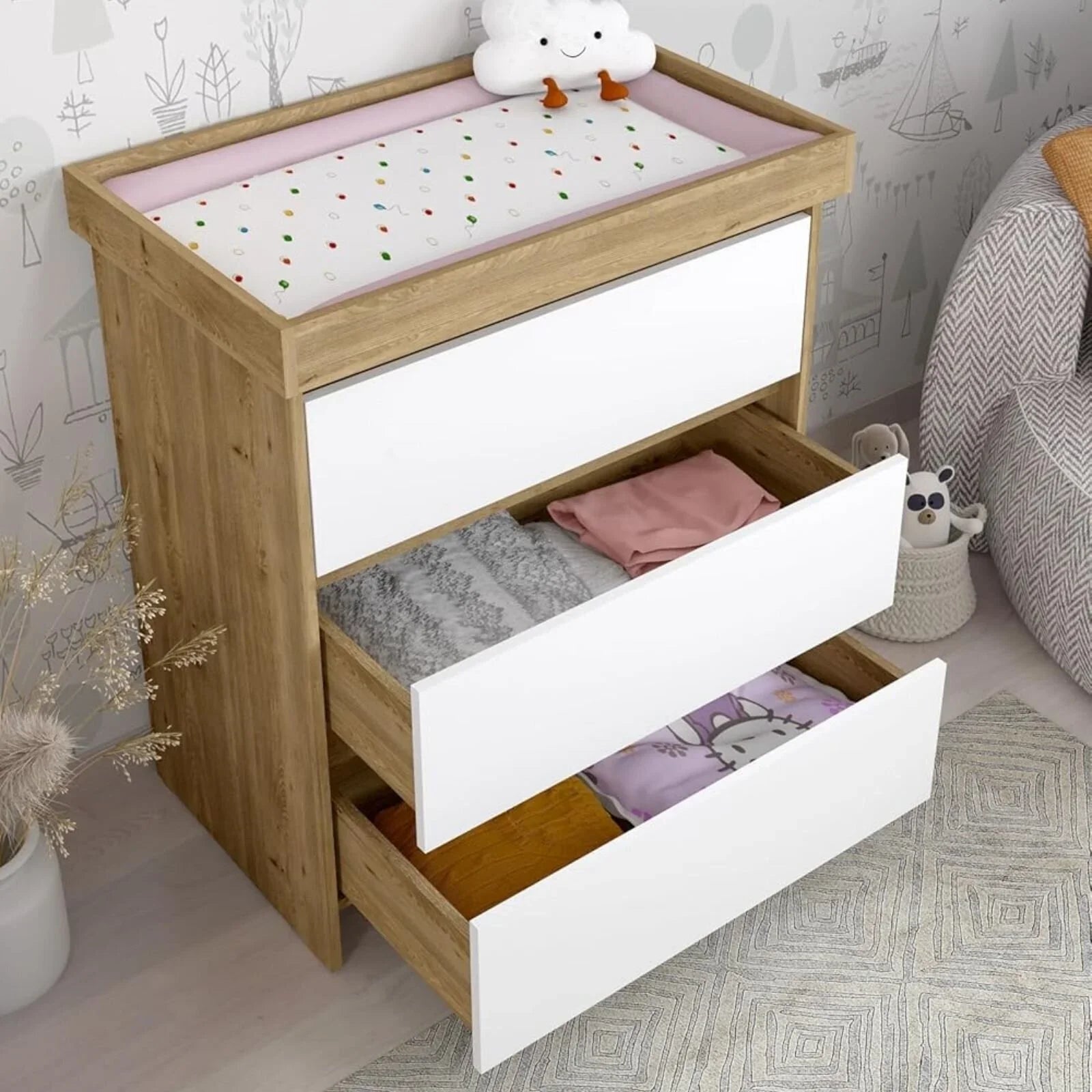 • Three deep drawers offer generous storage for nappies, clothing and essential care items.