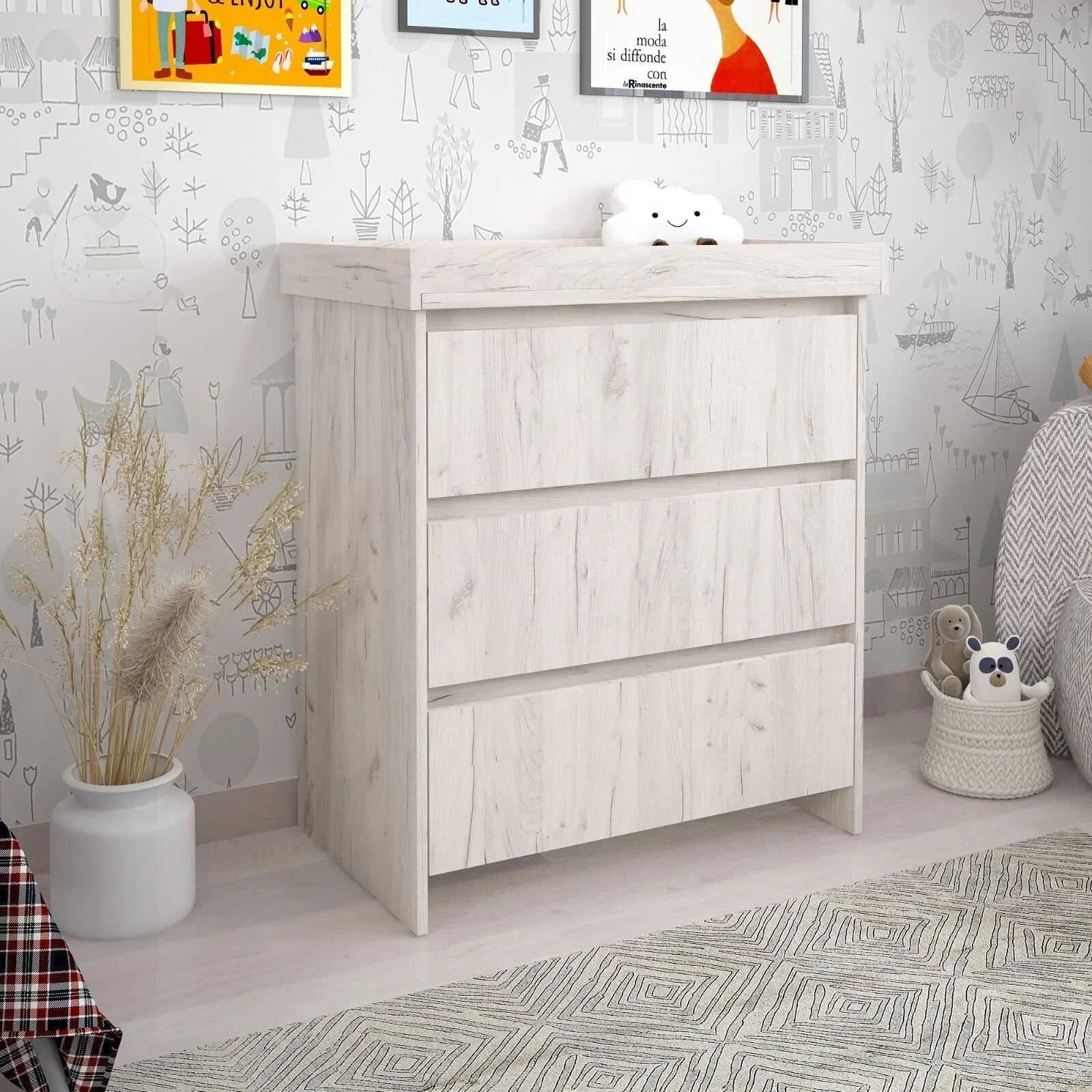 • Three deep drawers offer generous storage for nappies, clothing and essential care items.