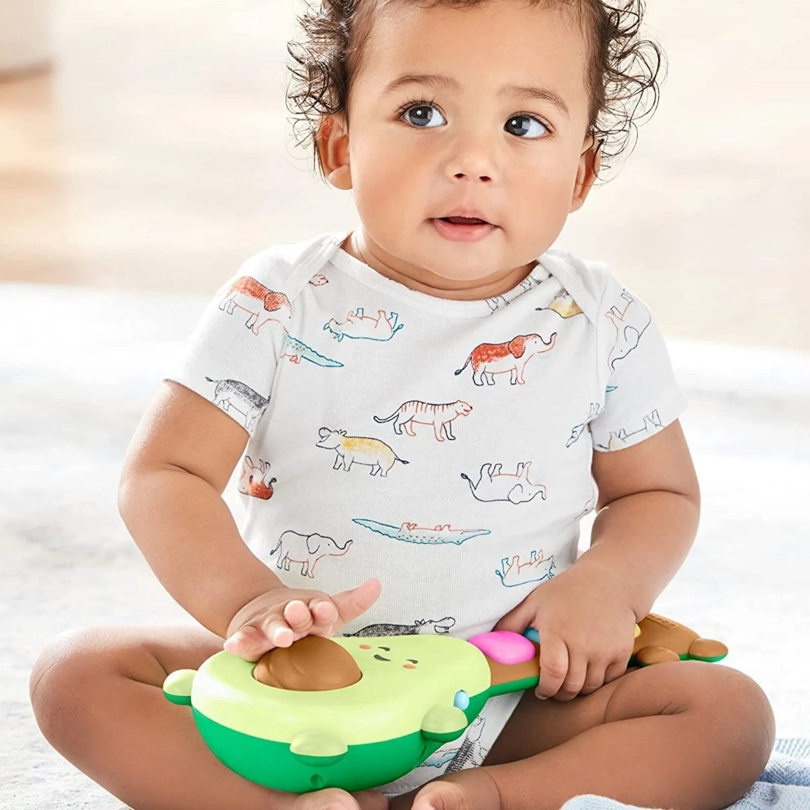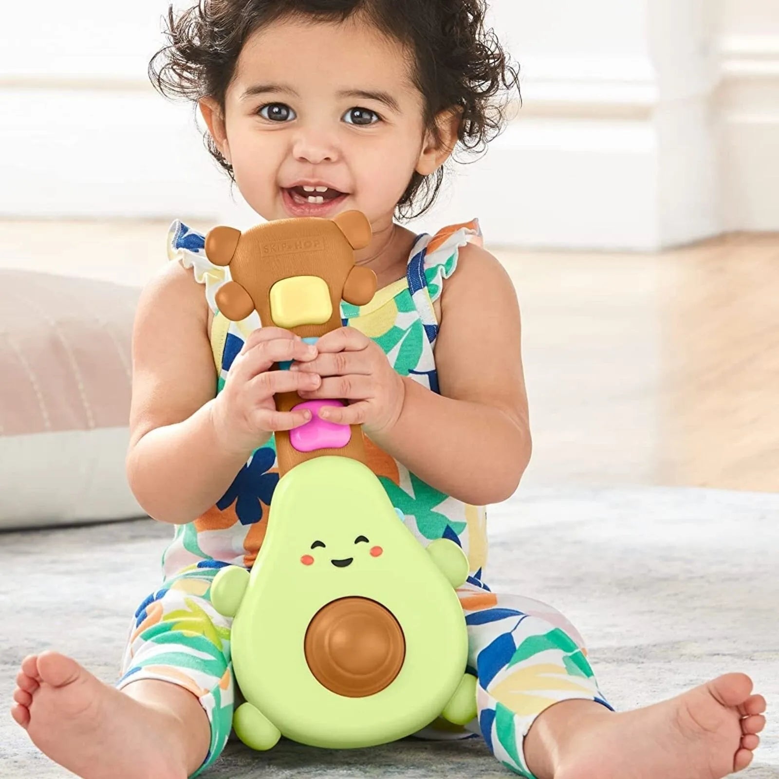 A little bit country and totally guac & roll! This adorable avocado guitar inspires mini musicians with strumming riffs, fun tunes and more! Easy for little hands to hold—just spin the avocado’s "pit" or press the light-up buttons and guac out!