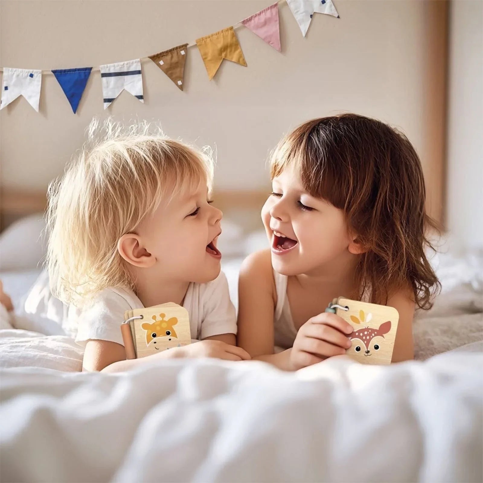 Speedy Monkey Little Jungle & Forest Books are perfectly sized wooden mini-books for little hands, capturing babies’ attention with their bright colours and adorable animal themes. They naturally support early language development, visual recognition and fine motor skills, while offering a variety of playful interactions such as flipping pages, exploring textures, stacking the books or creating simple stories — enriching the sensory experience with every use.