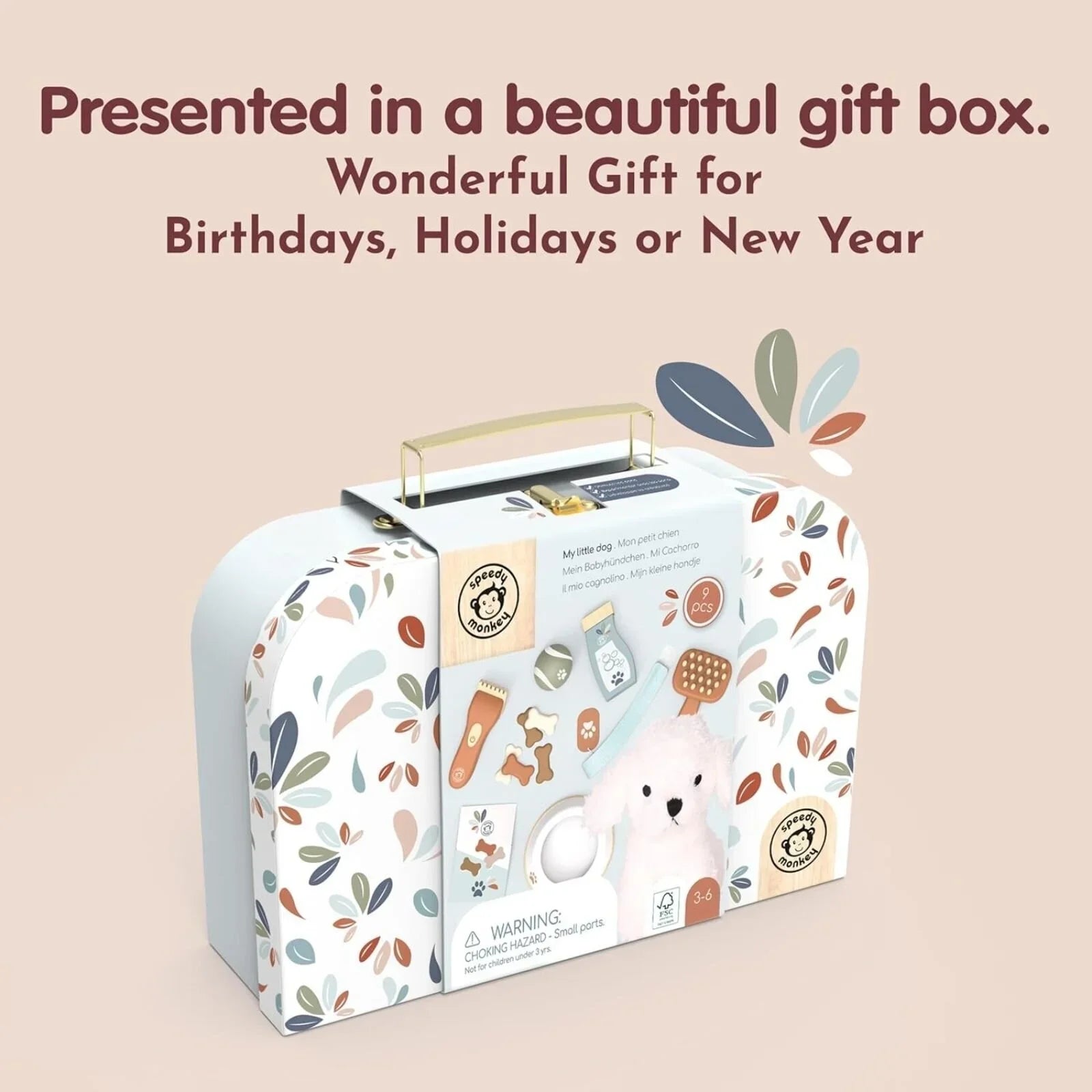 Speedy Monkey My Little Dog Toy is a wonderful role-play set that nurtures children’s imagination and helps develop their sense of responsibility. With its soft plush dog, food bowl, snacks, brush, collar and other accessories, it gives little ones a realistic pet-care experience. It’s an ideal first care set that supports imagination, problem-solving, fine motor skills and the development of empathy.