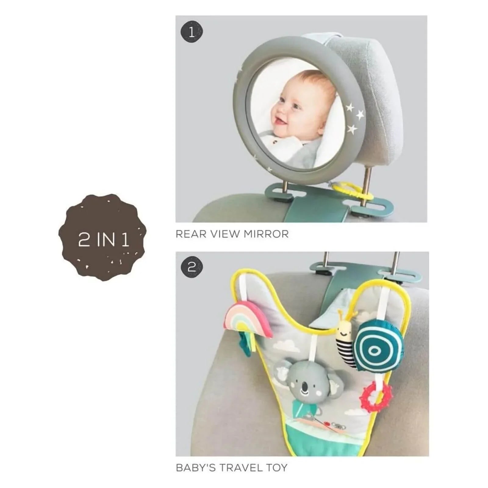 Introducing the Koala In Car Play Center, a perfect blend of a high-quality rearview mirror and colourful toys designed for rear-facing infants and toddlers. This innovative accessory allows parents to easily monitor their little ones while driving, ensuring peace of mind on the road. The baby-safe curved mirror offers a wide view, making it simple to keep an eye on your baby from the driver’s seat. The adjustable toys, including a crinkling rainbow and rattling characters, can be tailored to your baby's height, promoting engagement and calm during car rides. Safety-tested and easy to install on vehicles with adjustable headrests, this play centre combines fun, development, and safety, making every journey enjoyable for both baby and parent!