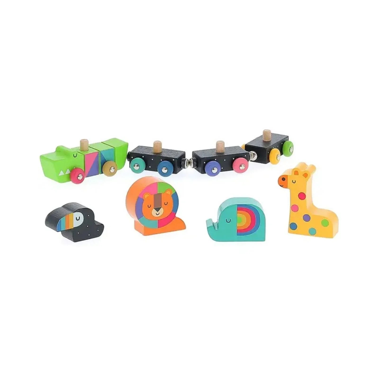 • Contents: Includes 1 crocodile locomotive, 3 magnetic carriages, and 4 wooden animals.