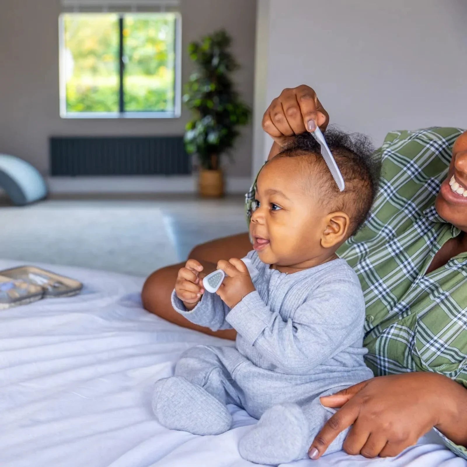 The Vital Baby Protect Brush & Comb Set is a super gentle haircare duo specially designed for your baby’s delicate scalp. The ultra-soft bristles glide through fine hair without irritation, while the non-scratch comb effortlessly tackles tangles without pulling. Made from BPA, latex and phthalate-free materials, this safe and eco-conscious set supports your baby’s grooming routine from birth.