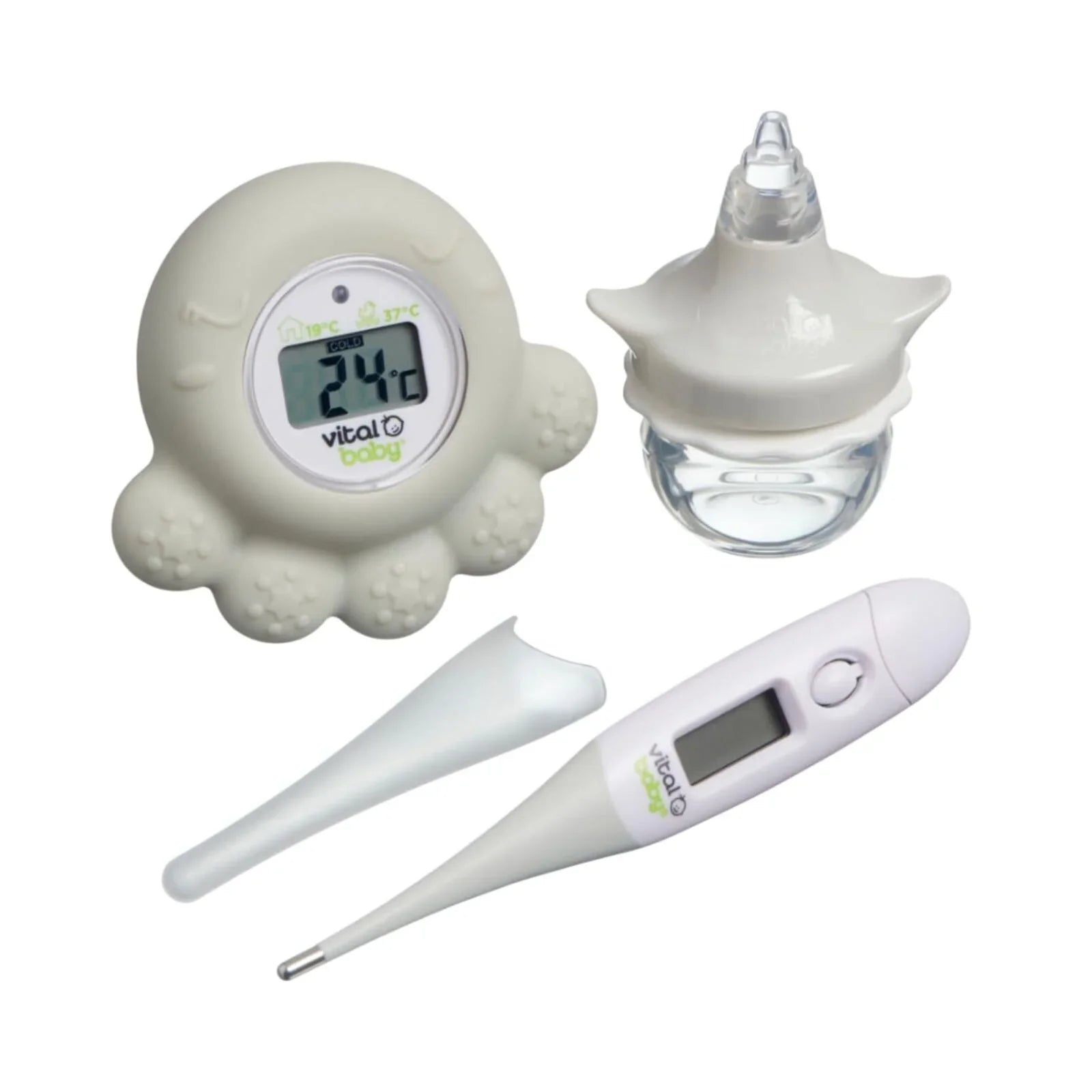 Room & Bath thermometer (bear): wipe clean and dry after use in water, Nasal decongester: hand wash in clean warm soapy water, and sterilise if required, Contact thermometer: wipe clean with anti-bacterial cleaner or sanitiser after use.